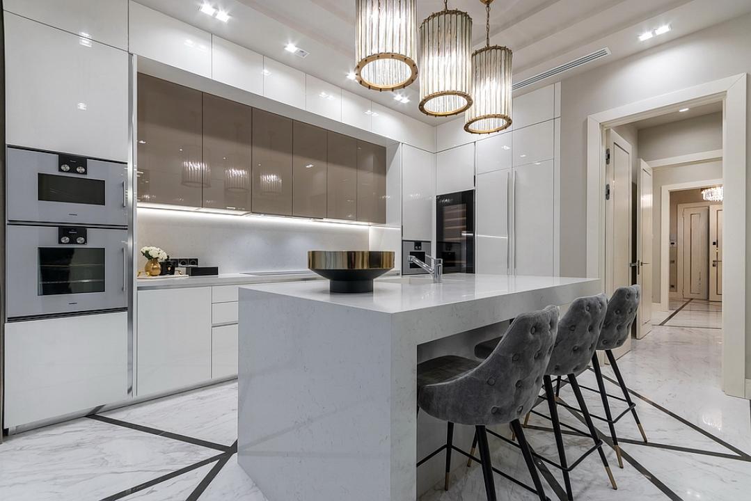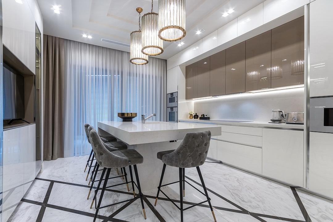 Квартира оборудована системой УМНЫЙ ДОМ, 2 холодильника, винный шкаф, много шкафов для хранения, солнцезащитные жалюзи. Все аксессуары, используемые в интерьере имеют сертификаты!