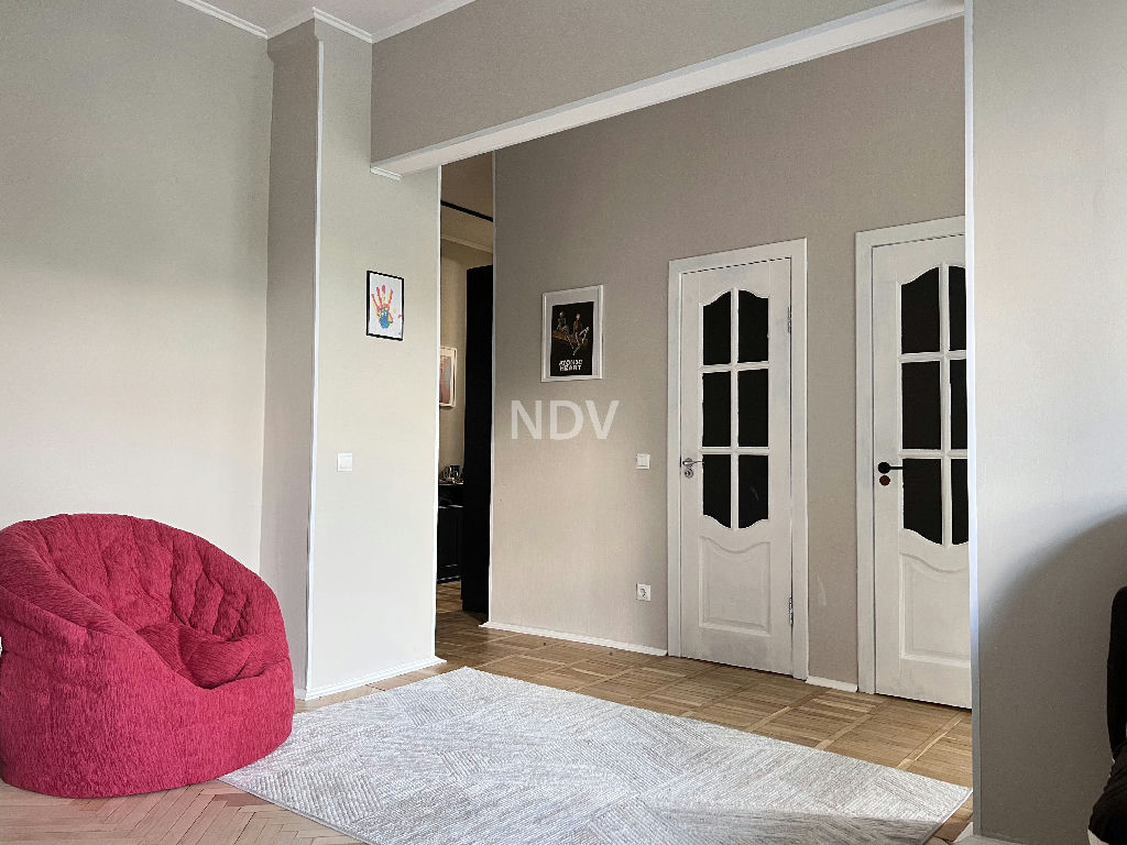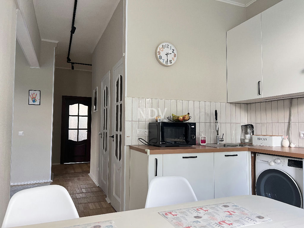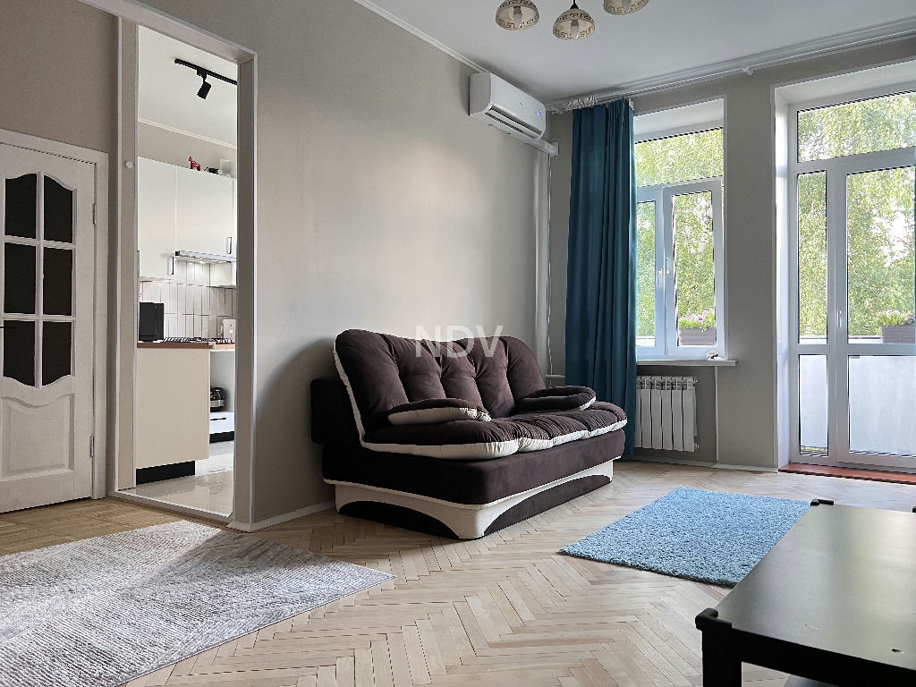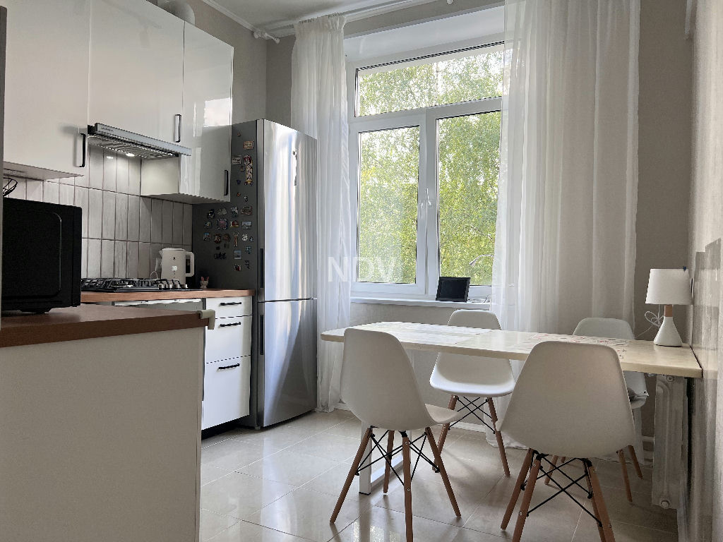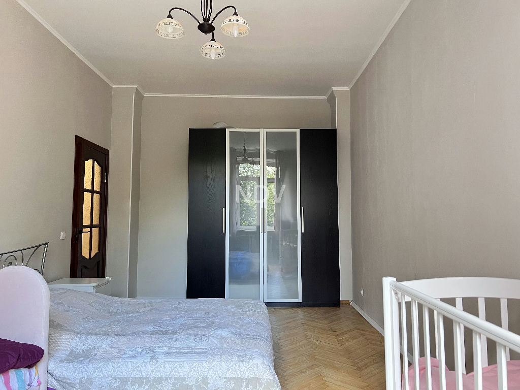 Кирпичный дом построен по индивидуальному проекту в 1957 году. Потолки от 3 м, ж/б перекрытия. Квартира в хорошем состоянии и можно заехать и жить. Общая площадь 82,4 кв.м, комнаты 21-20-14,3 кв.м, кухня 10 кв.м.