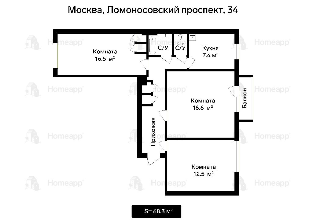 Общая: 68,3 м2
