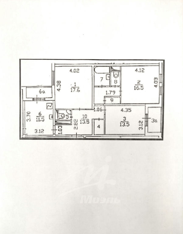 Комнаты: 13.5 16.5 17.6 м2