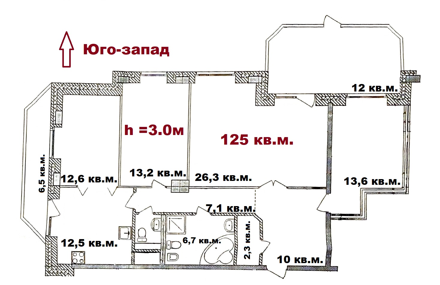Комнаты: 26.3-25.8-13.6 м2