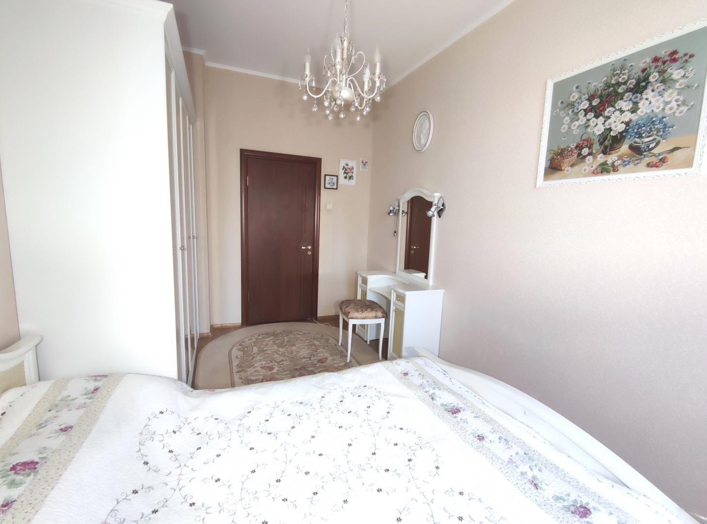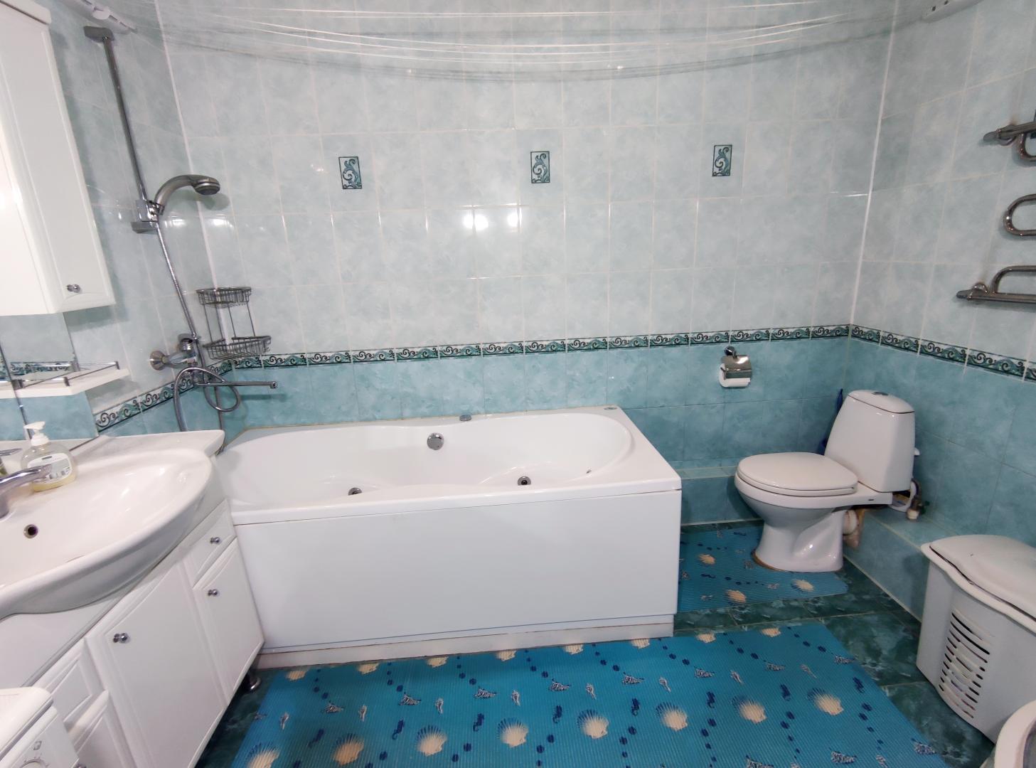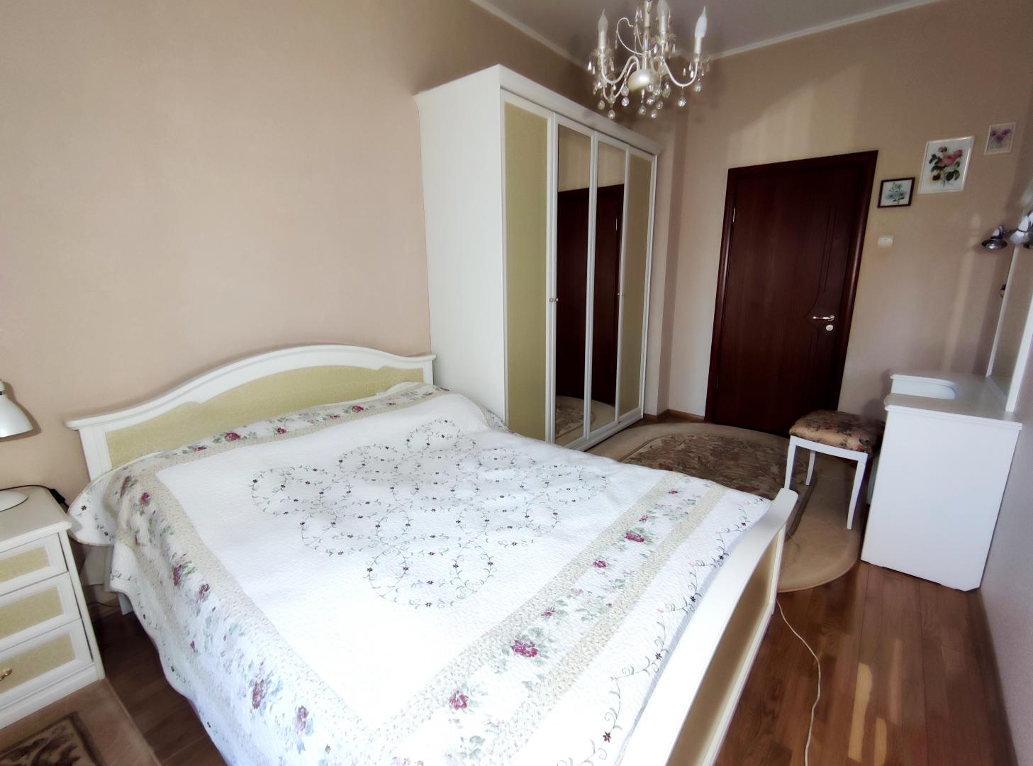 Монолитно-кирпичный дом с подземным паркингом 2006 года с потолками 3 метра. Дом стоит на возвышенности, вся квартира ориентирована на юг и юго-запад. В собственности более 5 лет, 1 взрослый собственник, круглосуточная охрана. Во дворе есть гостевой паркинг за шлагбаумом. Ванная 7,3м и туалет с раковиной 1,6м. Есть выход на эксплуатируемую кровлю 18м, есть согласие собственников дома. Развитая инфраструктура: магазины, ТЦ, детские сады, поликлиники. ЖСК "Ветеран" (Военные ветераны). Крайне низкие коммунальные платежи 5,5тыс.