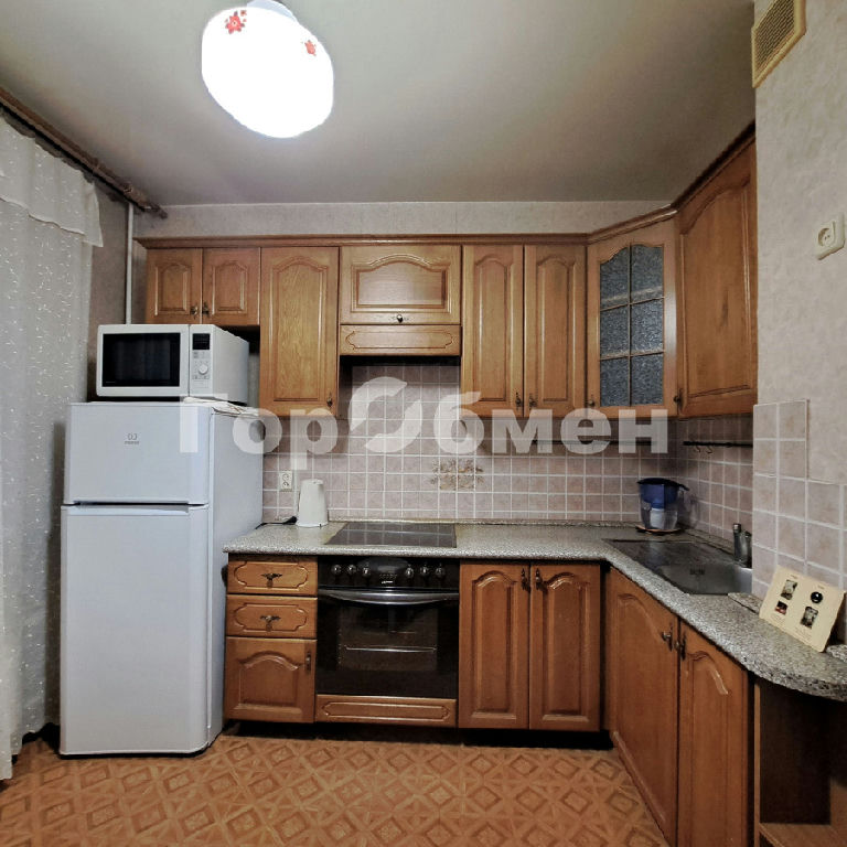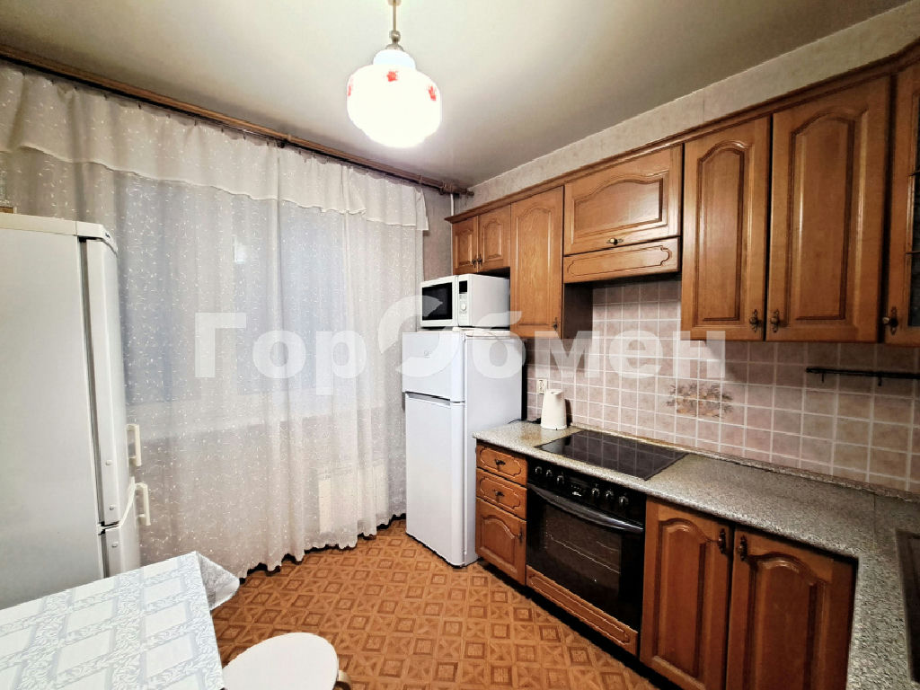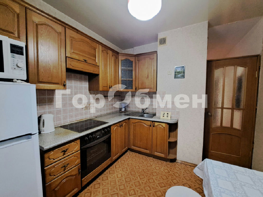 Состояние жилое, требуется косметический ремонт: стены обои, пол - ламинат, плитка; встроенная кухня, встроенный шкаф в прихожей.