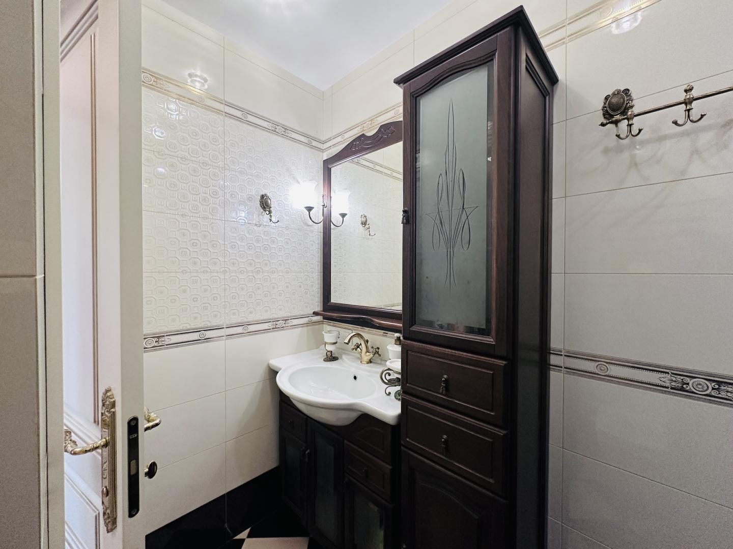 Встроенная кухня укомплектована бытовой техникой ведущих производителей, полы паркет, плитка с подогревом.