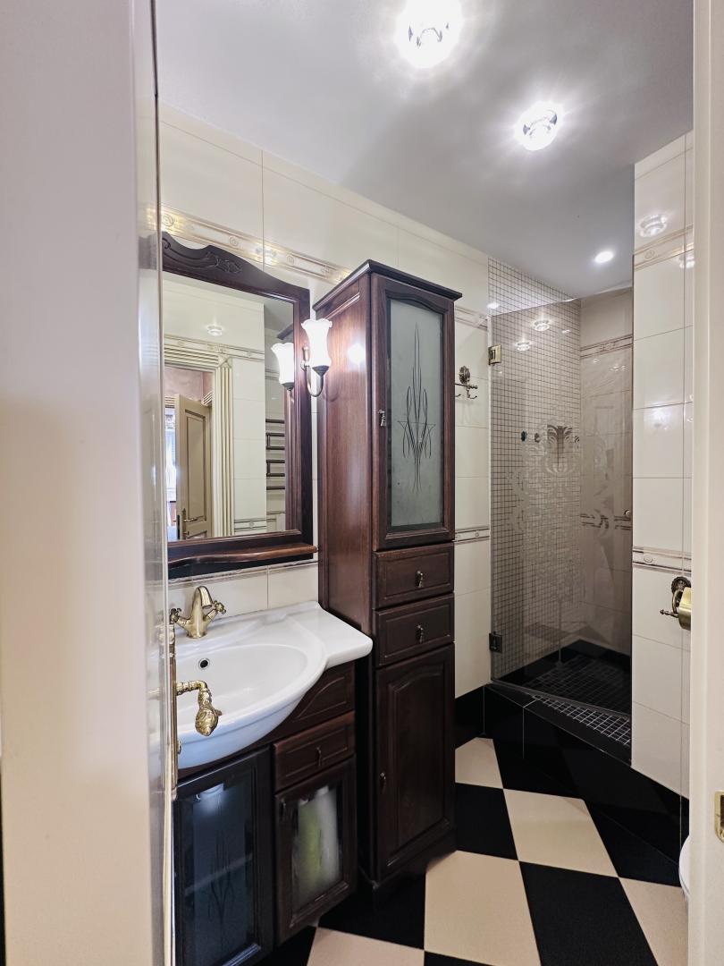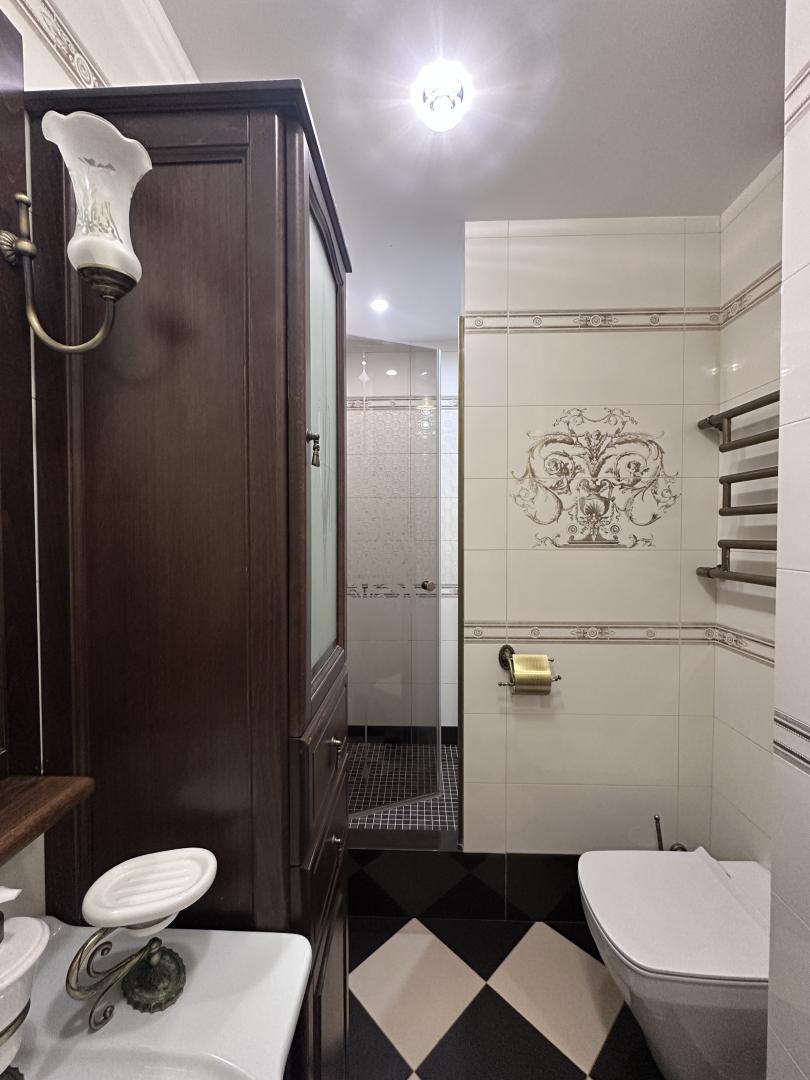 Квартира с очень качественным ремонтом с заменой всех коммуникаций, делали для себя, с вниманием к деталям, использовались лучшие материалы, дизайнерские решения придали уют и особую атмосферу. Благодаря расположению квартиры и ориентированности окон, в квартире очень светло и солнечно. Отличная планировка: окна выходят на две стороны: спальня и детская выходят во двор; кухня , гостиная, большой светлый холл с лоджией - выходят на улицу, все три лоджии эксплуатируемые (площадь квартиры указана с лоджиями). Санузел раздельный, просторная ванная с современной душевой.