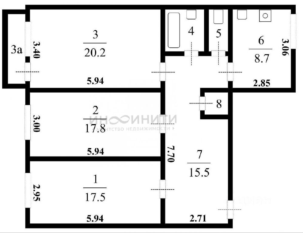 Жилая: 55,5 м2
