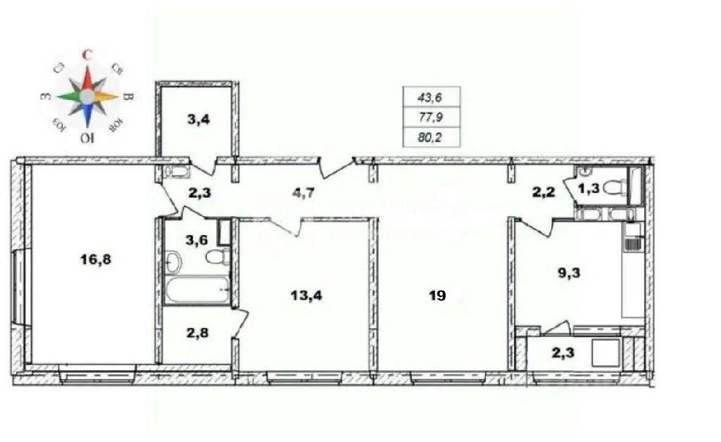 Общая: 80 м2