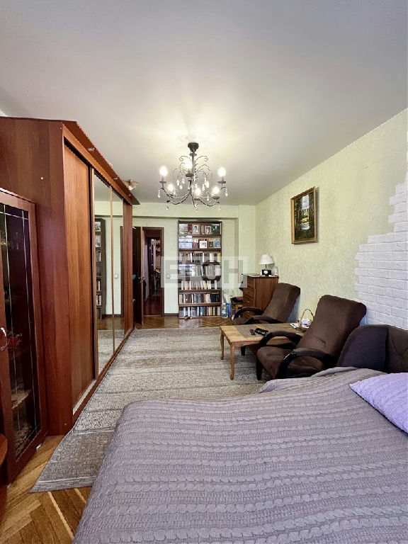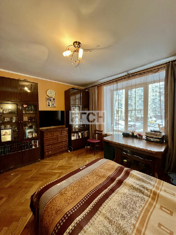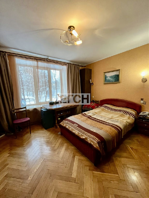 Предлагается к покупке трехкомнатная квартира с изолированными комнатами. Объект обладает функциональной планировкой: окна двух комнат и кухни ориентированы на тихий двор, тогда как одна комната выходит на Ленинский проспект.