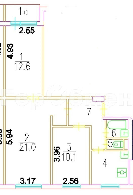Комнаты: 10.1 21 12.6 м2