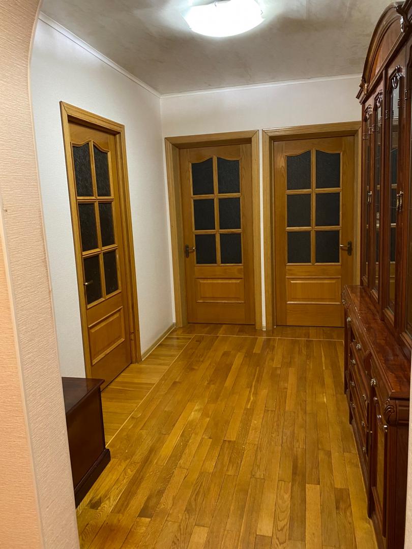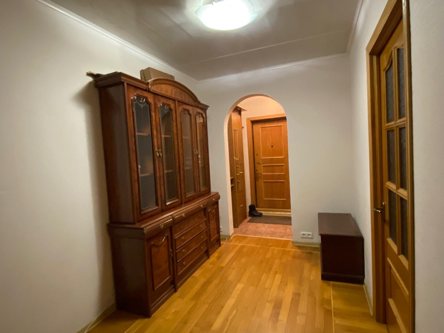 Продам квартиру с тремя изолированными комнатами, отдельной кухней, окнами на две стороны (восток-запад), выходящими с обеих сторон в тихий зеленый двор. В квартире просторный холл, из гостиной выход на застекленную, облицованную деревом лоджию. В стоимость включена встроенная мебель и техника на кухне, все встроенные шкафы, кое-что ещё.