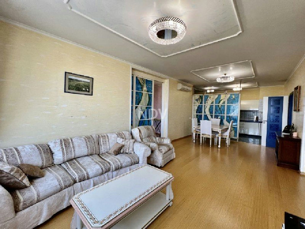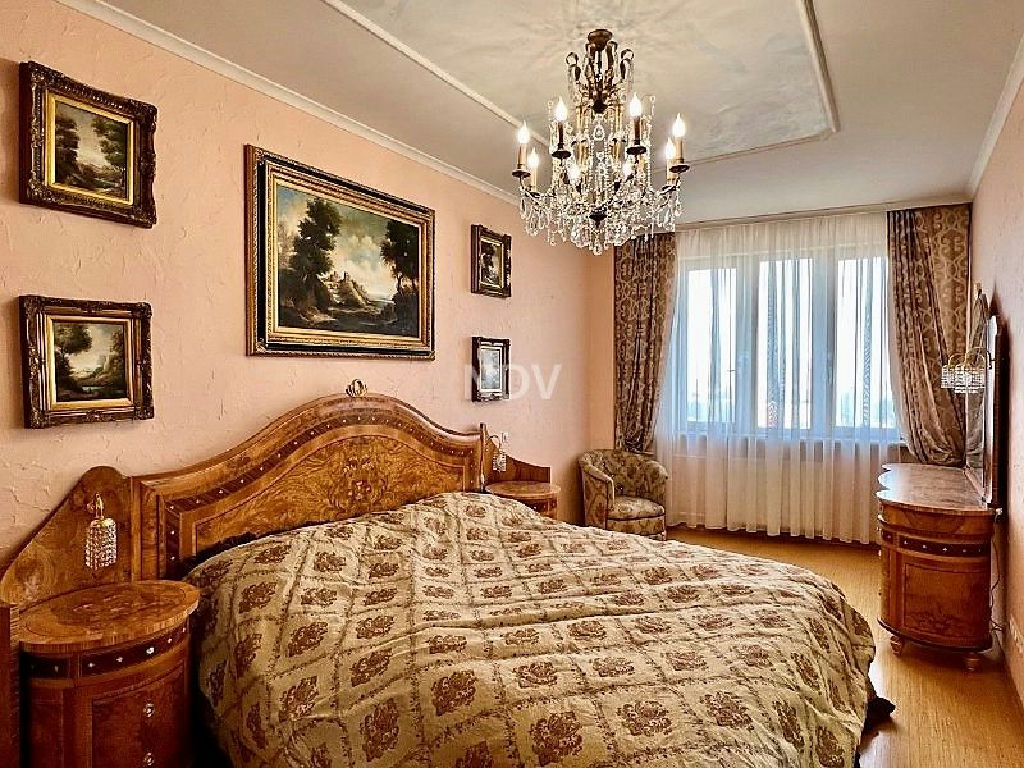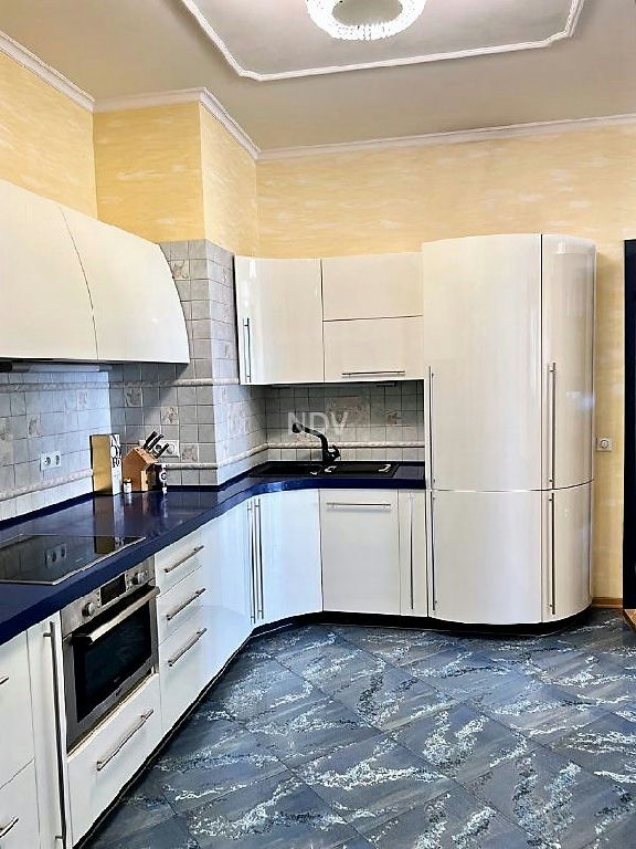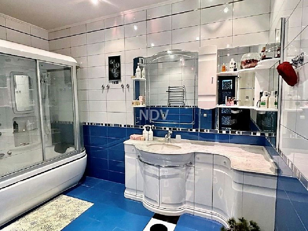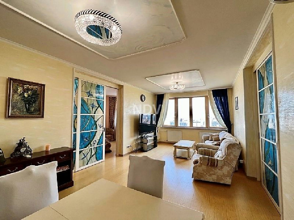 Собственники квартиры, обладая великолепным вкусом, продумали каждую деталь, вплоть до мелочей. Сделан чудесный ремонт в приятных бежево-голубых тонах. Потолки высотой более 3 метров! На полу в санузле, коридоре и на кухне - плитка (теплый пол), в жилых комнатах ламинат. Хрустальные светильники, приятных оттенков шторы, красочные витражи, картины, мягкая мебель, дорогой спальный гарнитур из карельской березы создают красоту и уют. Нет ничего лишнего, все стильно и очень достойно.
