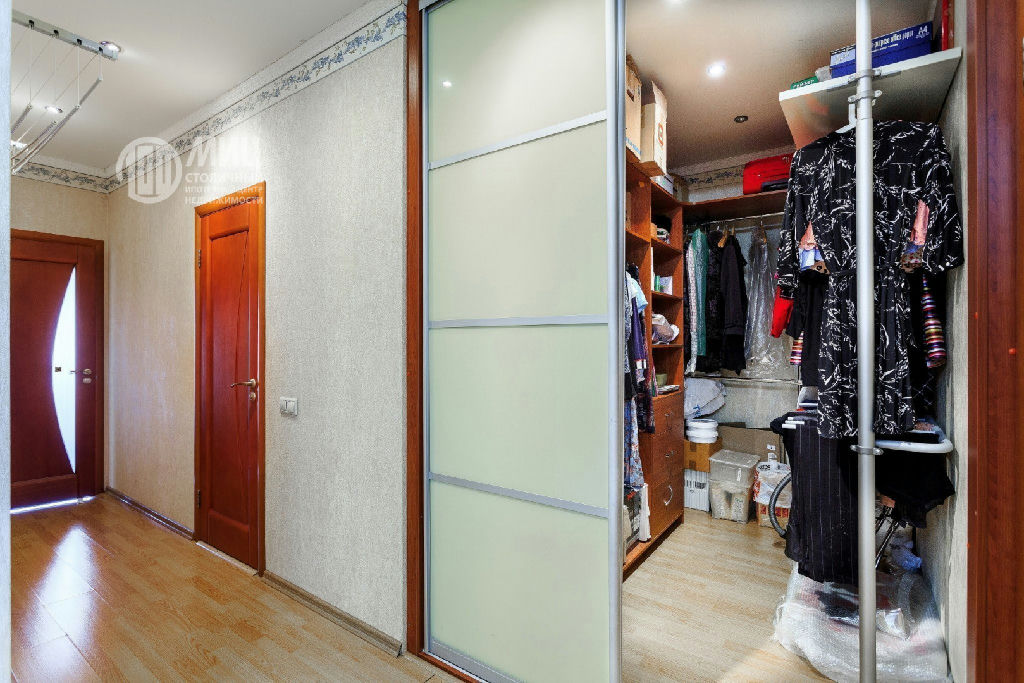Две комнаты с выходом на застеклённые лоджии. Гардеробная оборудована стеллажами.