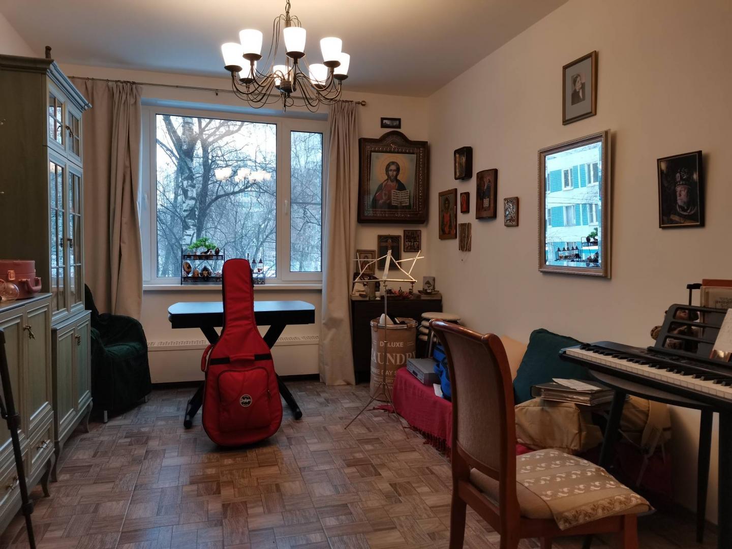 Окна из двух комнат и кухни - во двор, на северо-восток; из третьей комнаты через балкон - на улицу, на юго-запад.