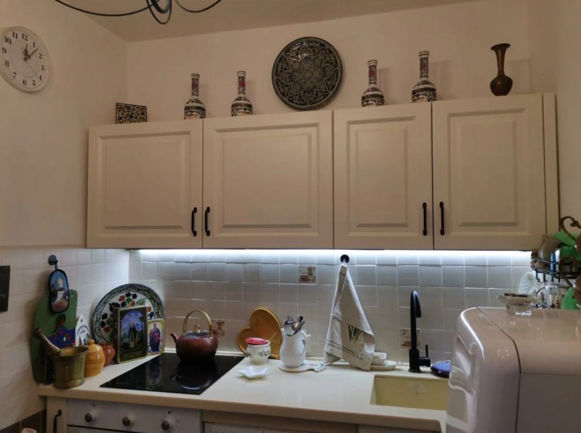 Кухонный гарнитур со встроенной бытовой техникой остаются новому хозяину.