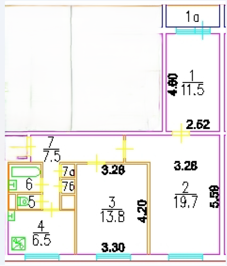Комнаты: 19.7+11.5-13.8 м2