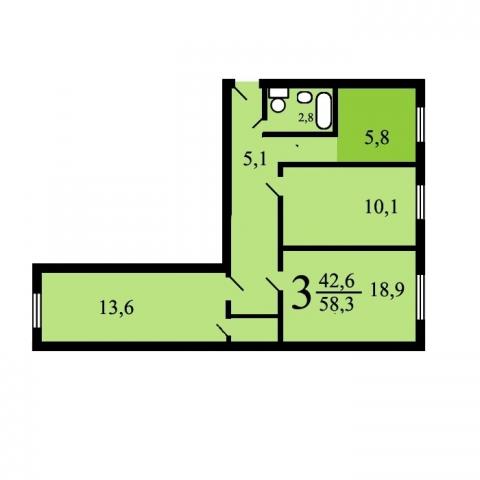 Комнаты: 18,9-13,6-10,1 м2