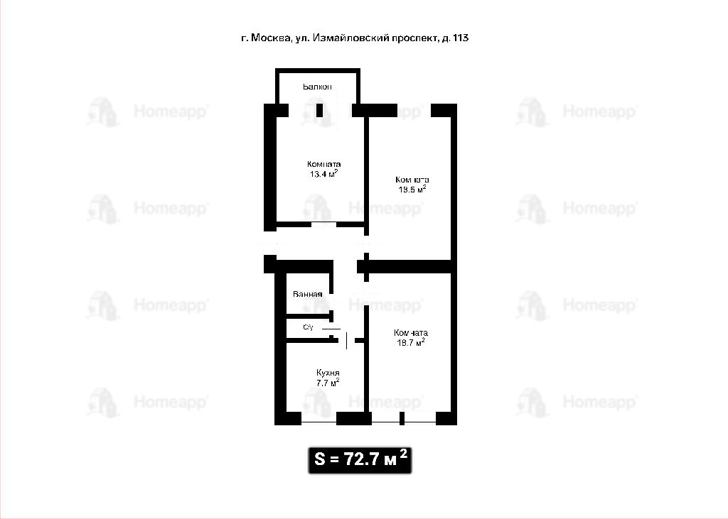 Общая: 72,7 м2