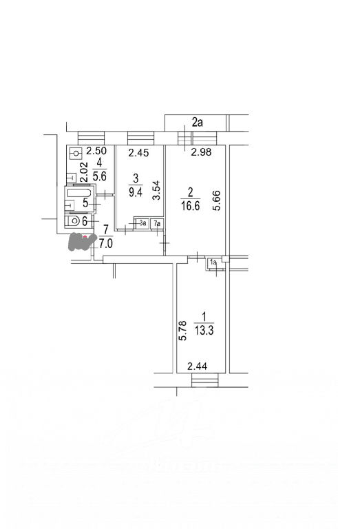 Комнаты: 9.4 16.6 13.3 м2