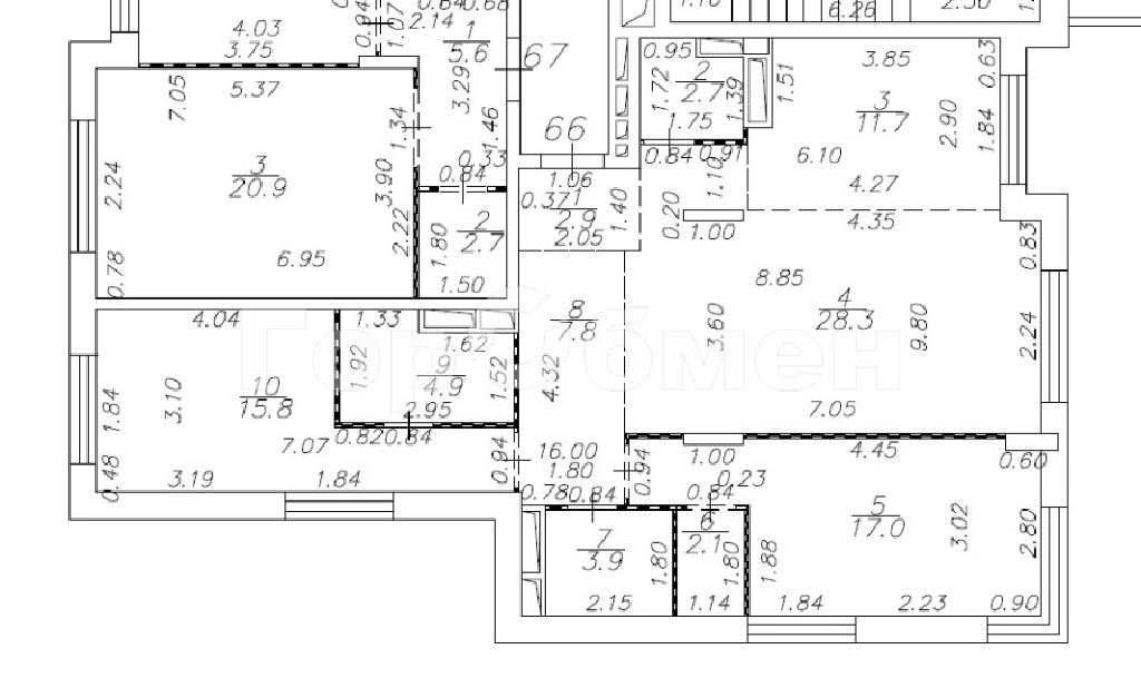 Комнаты: 28.3 17 15.8 м2