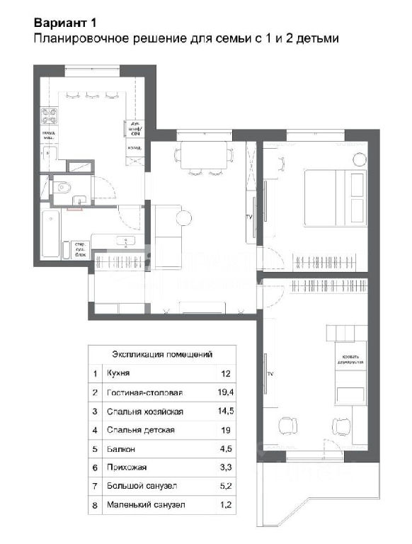 Жилая: 53 м2