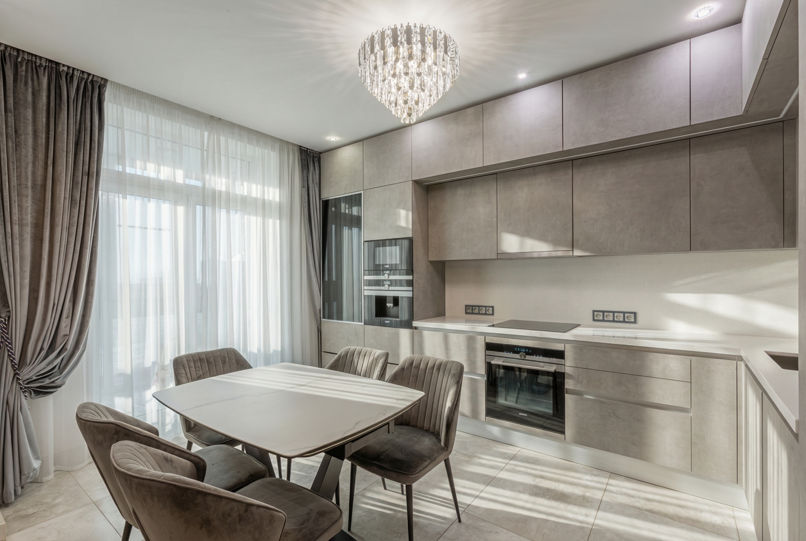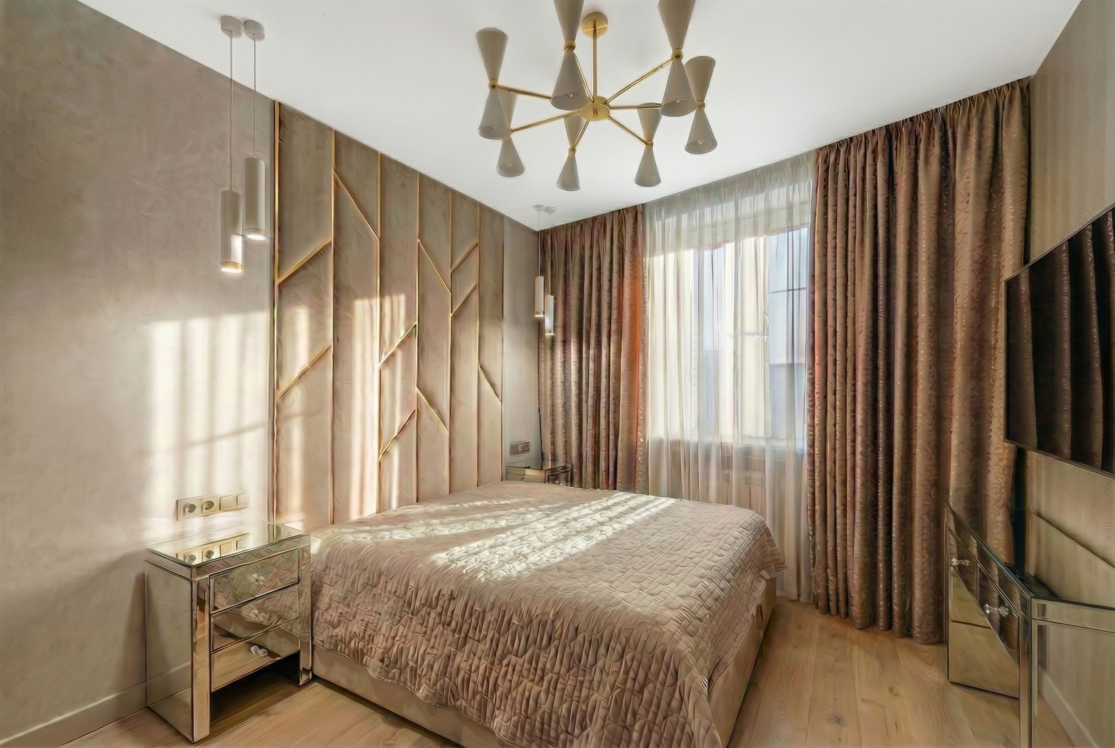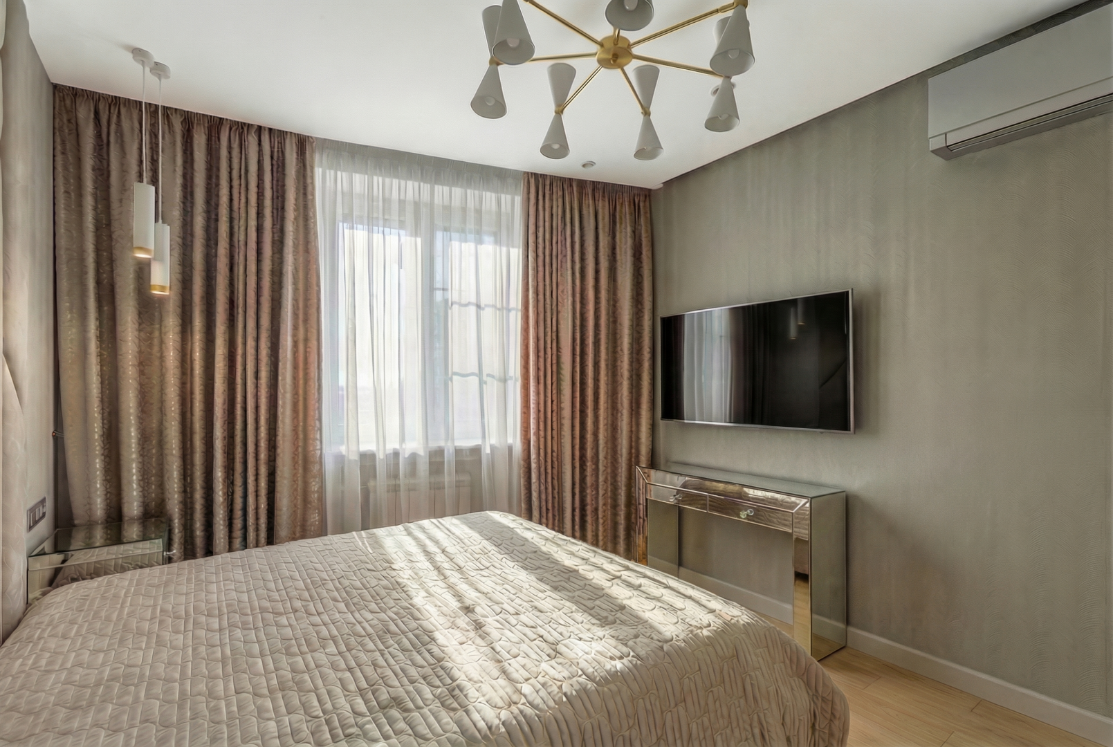 В квартире сделан евро-ремонт из дорогих высококачественных материалов.