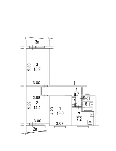 Комнаты: 15.9-14.4-13 м2