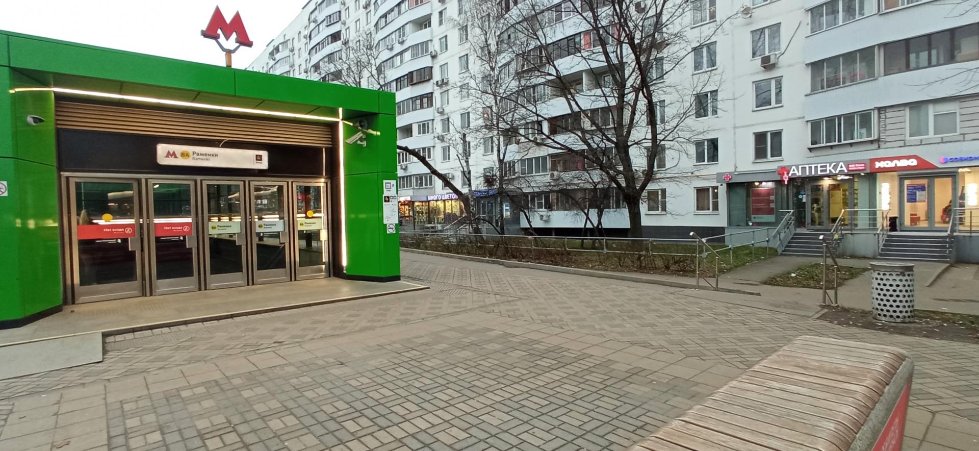 В 1 минуте пешком до станции метро Раменки (выход номер 4 прямо напротив арки во двор дома) ,