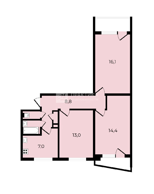 Общая: 62,8 м2