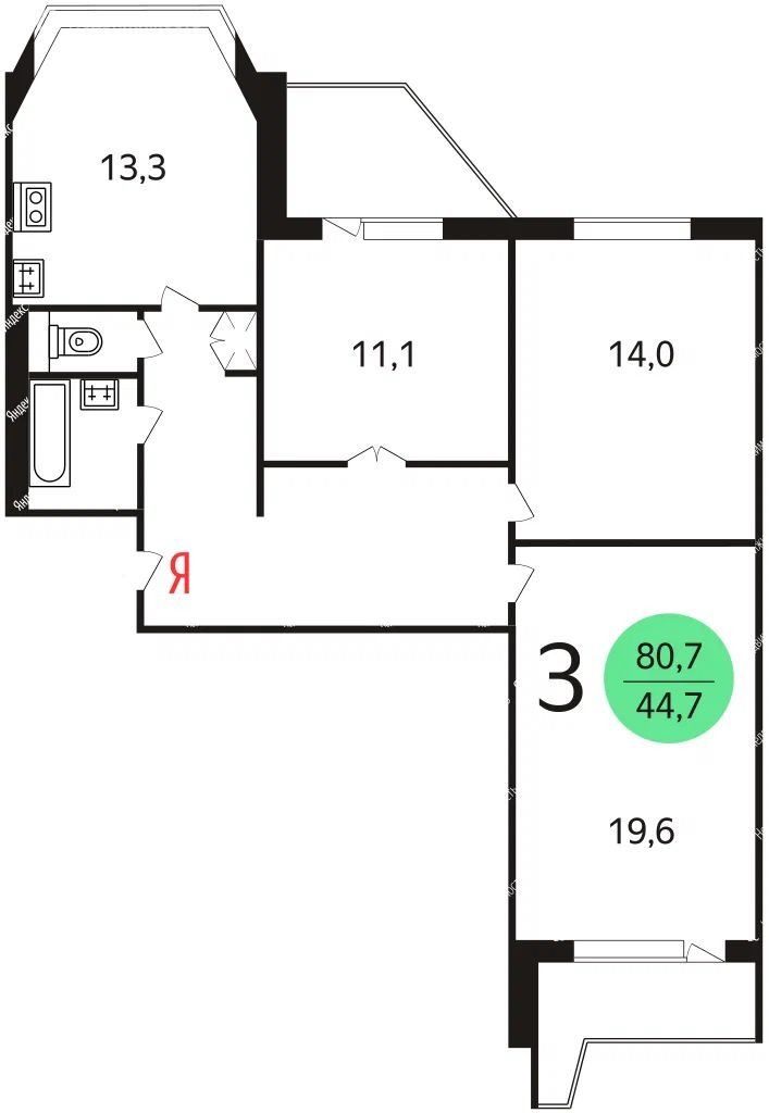 Общая: 80,7 м2