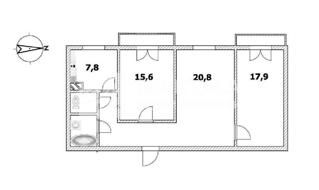Жилая: 54,3 м2
