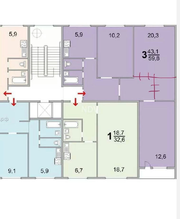 Жилая: 43,1 м2