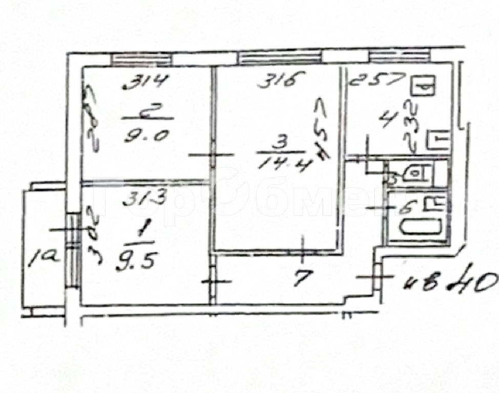 Комнаты: 14.4 9.5 9 м2