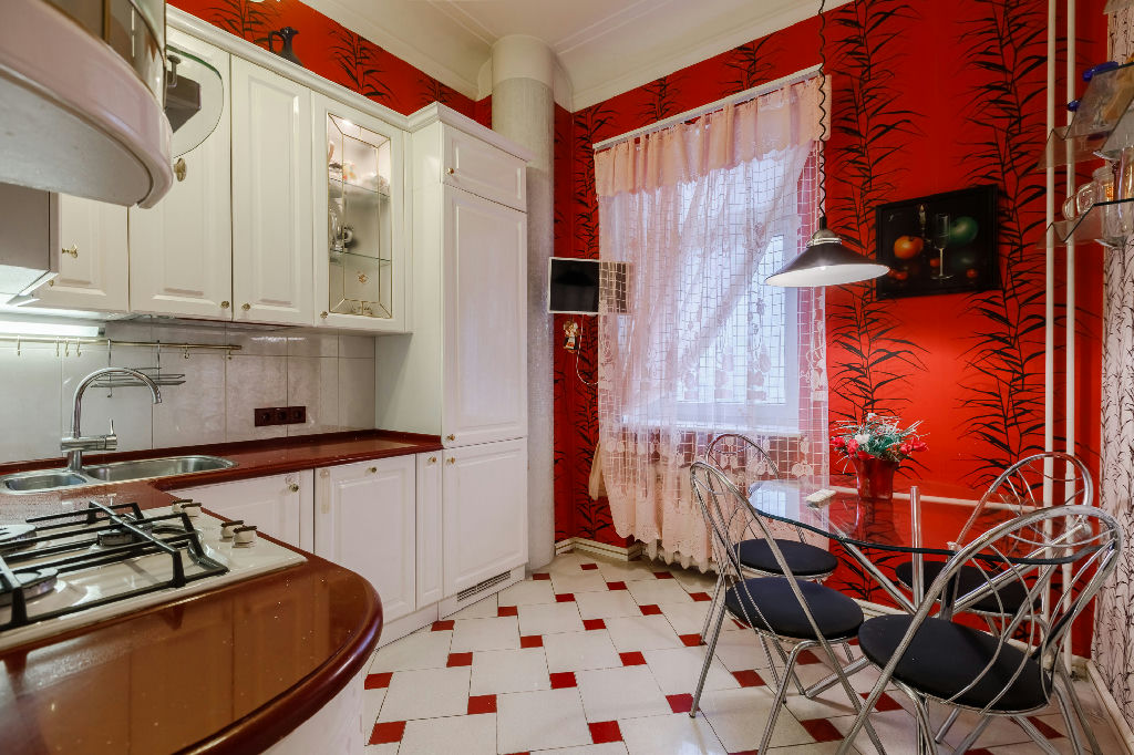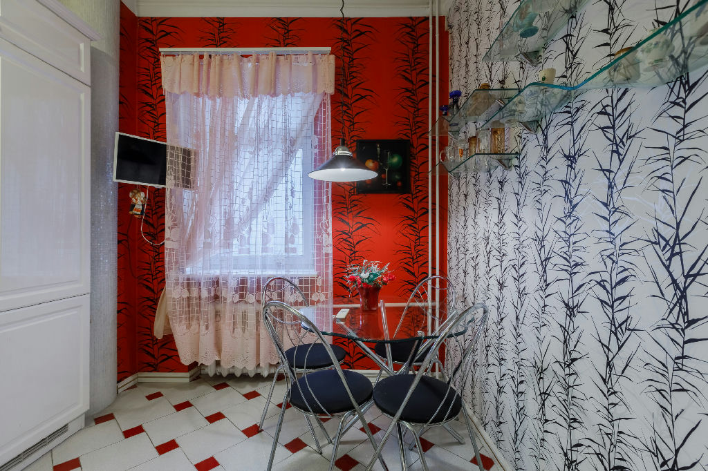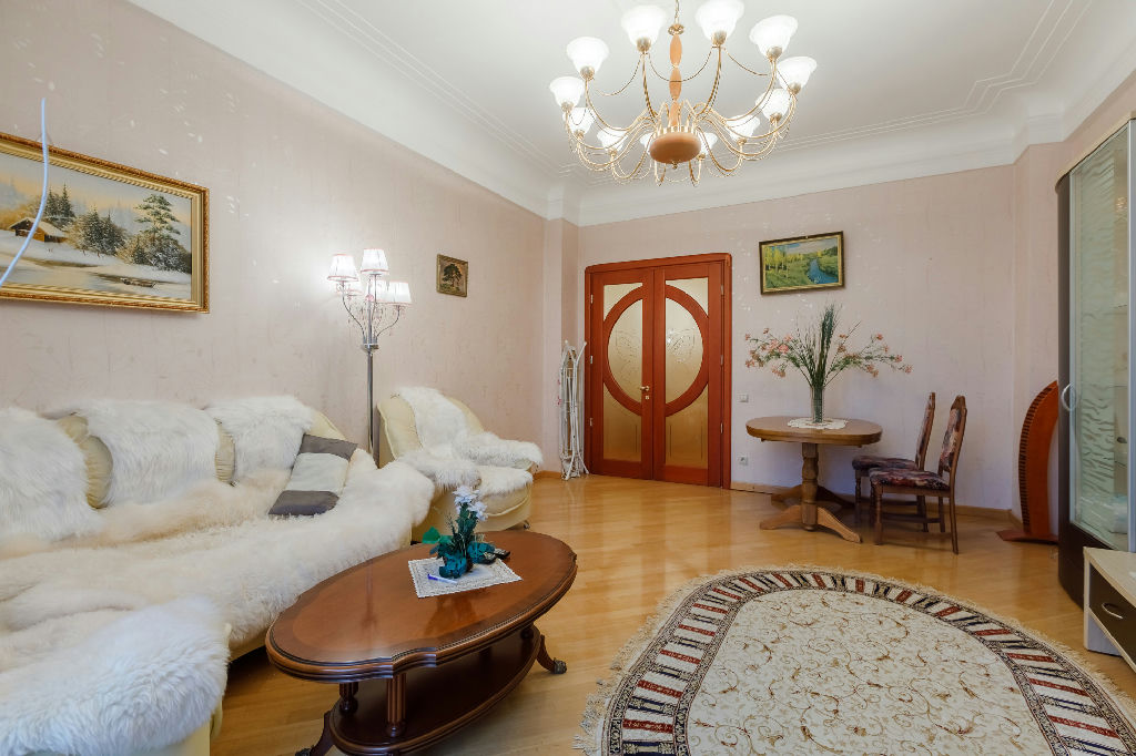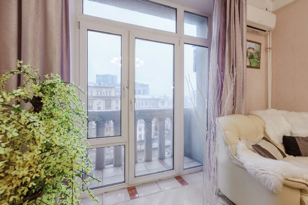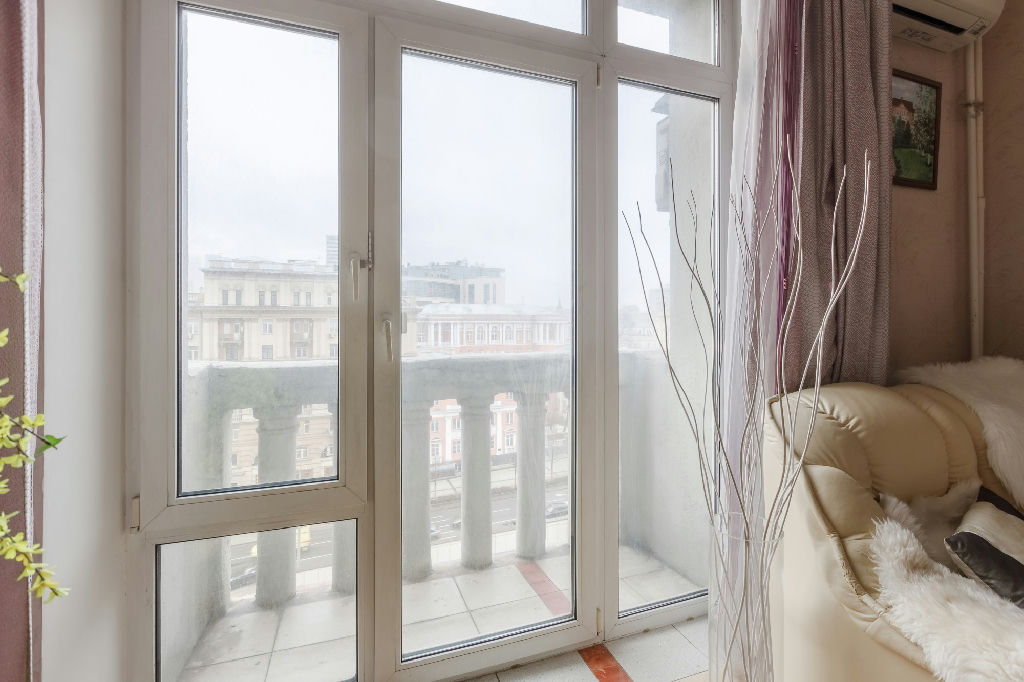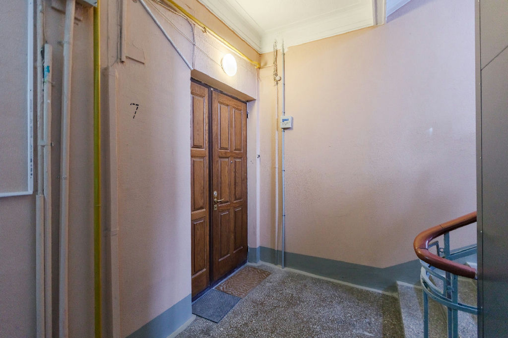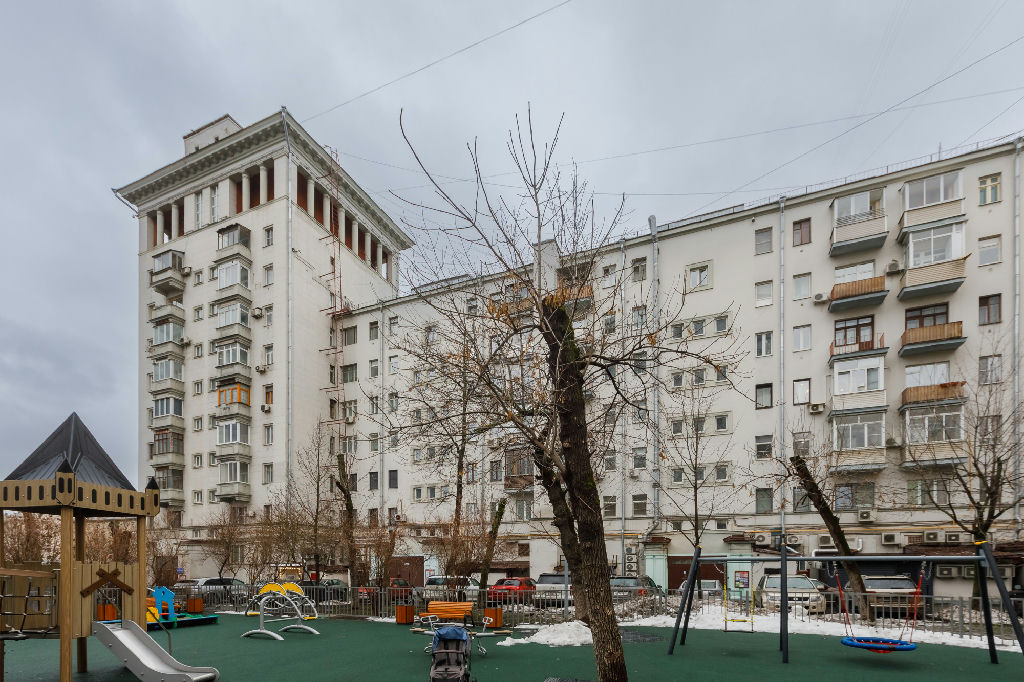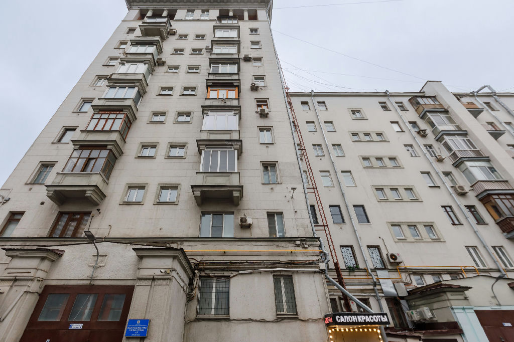 Квартира находится на 7 этаже 10-этажного кирпичного дома, построенного в 1938 году. Высокие потолки 3.2 метра придают особый шарм и простор. Окна выходят во двор, что обеспечивает тишину и спокойствие.