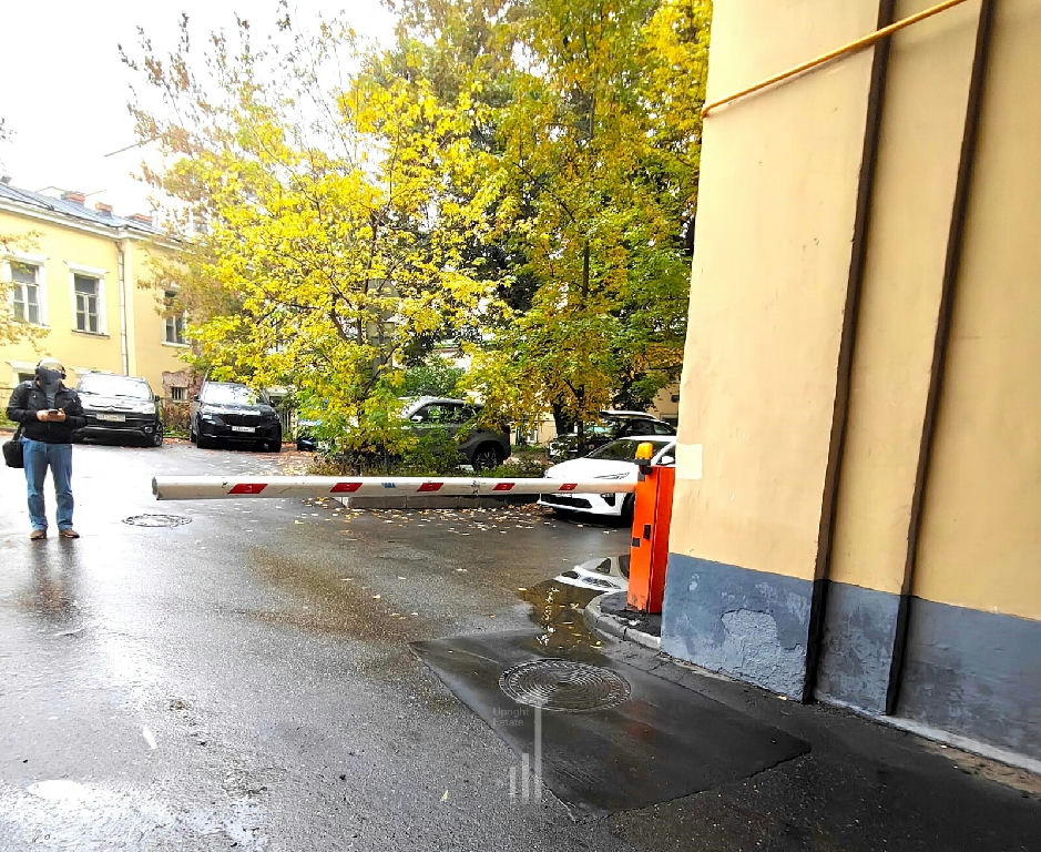 Чистый и ухоженный подъезд. Въезд в тихий и зелёный двор дома через шлагбаум.
