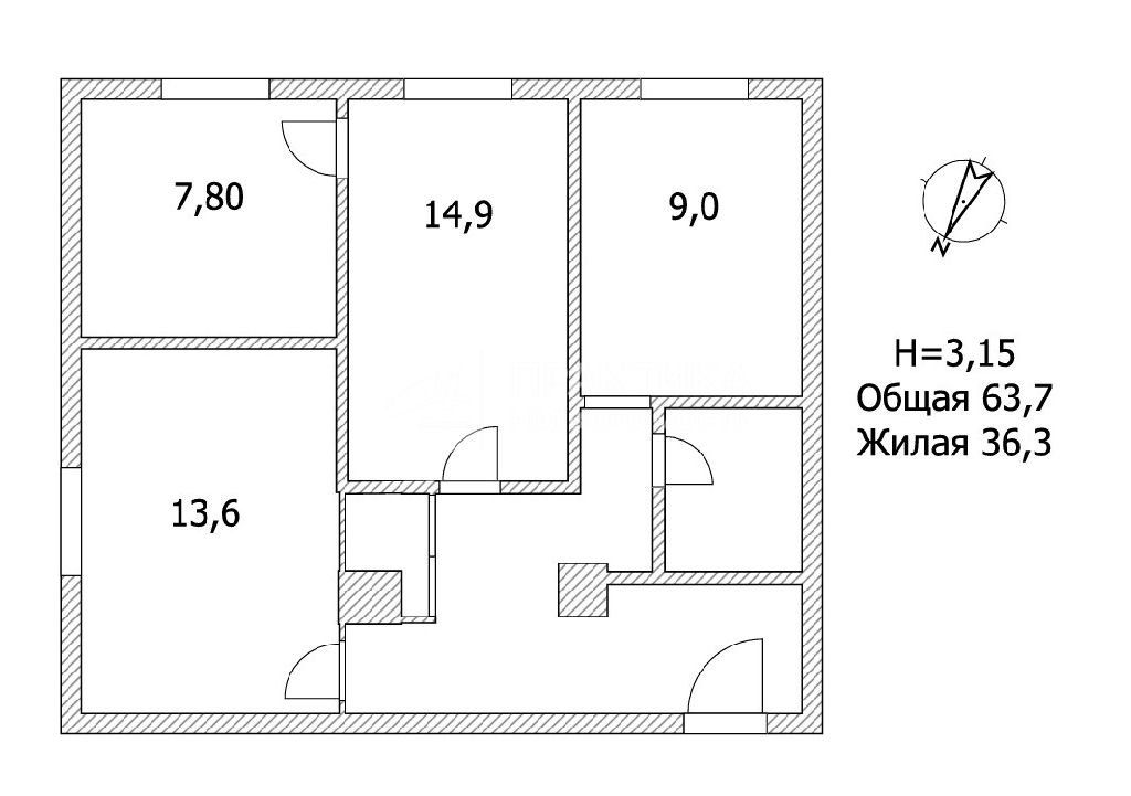 Общая: 63,7 м2