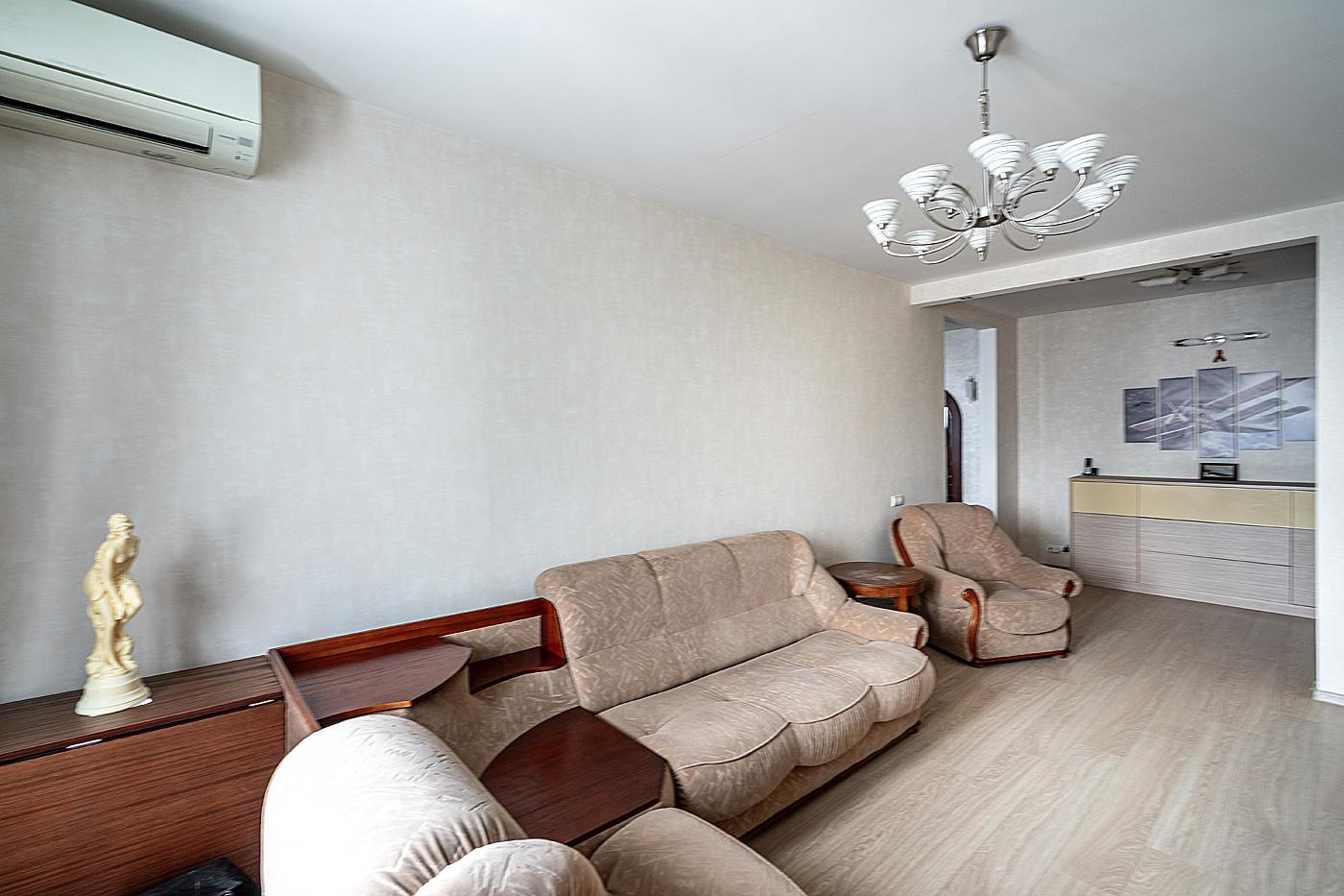 Квартира полностью укомплектована мебелью и может похвастаться дизайнерским ремонтом, который выполнен с учетом всех современных требований к комфорту и эстетике. Раздельный санузел добавляет дополнительное удобство для большой семьи.