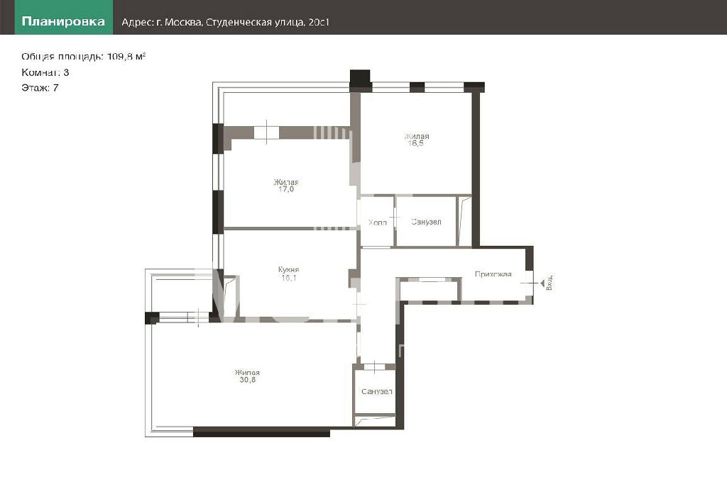 Общая: 109,8 м2