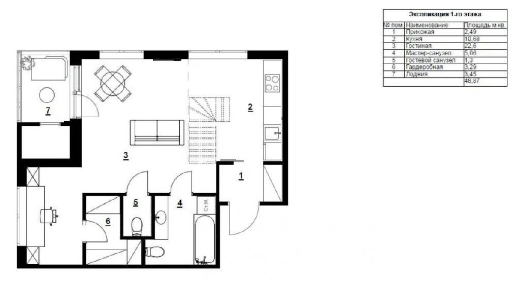 Сейчас площадь по ЕГРН - 48 кв.м, но за счёт высоты потолков можно создать полноценный второй уровень площадью в 19 кв.м и зарегистрировать его. В итоге квартира может быть увеличена не только физически, но и документально почти до 68 кв..