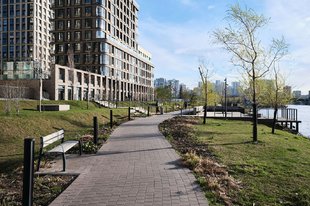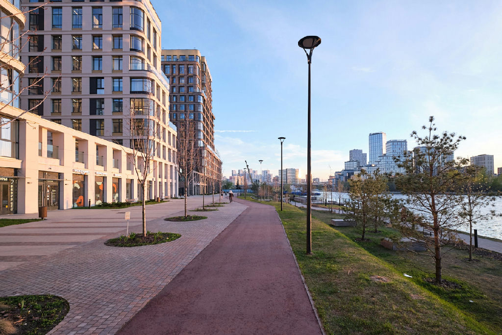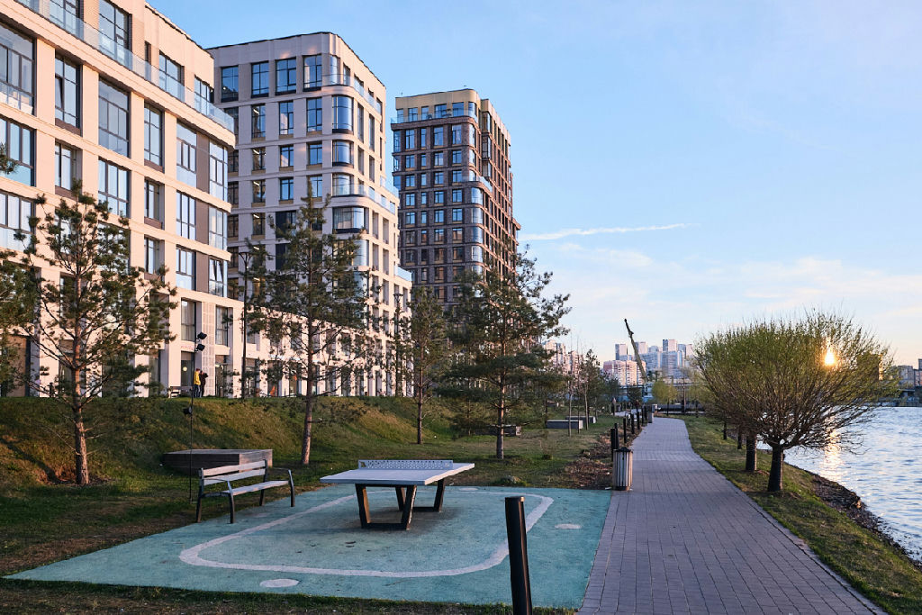 Дом расположен в современном квартале у воды. Есть свой выход к набережной, прогулочные зоны.
