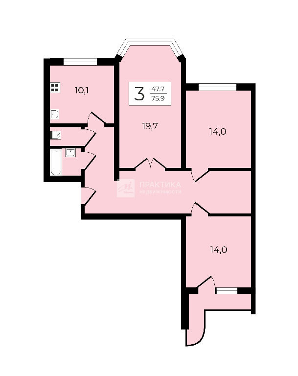 Общая: 75,9 м2