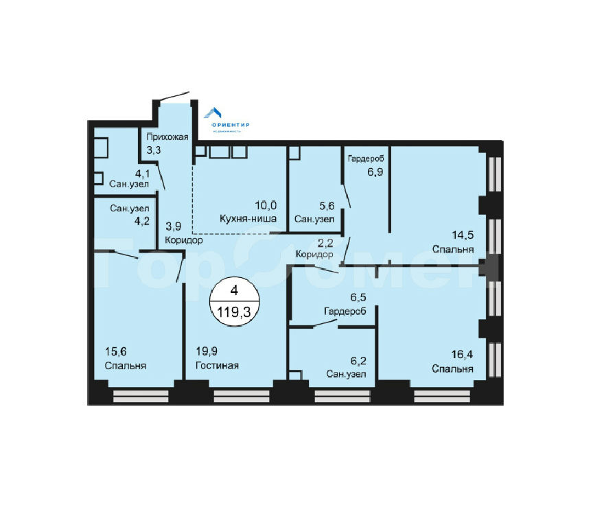 Общая: 119 м2