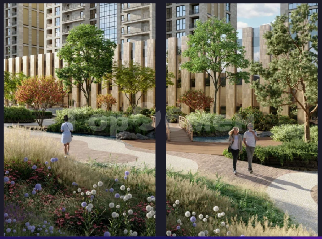В современном ландшафтном дворе-парке площадью 1,7 гектара c арт-объектами будут оборудованы игровая спортивная площадка и воркаут-зона. Для маленьких жителей появится развивающая детская площадка. На территории квартала предусмотрены престижная частная школа и детский сад. Среда двора-парка дополнится инфраструктурным хабом, для которого отведено отдельное здание. В нём предусмотрены общественная гостиная; игровая комната; фитнес-клуб (24/7) с собственным 25-метровым бассейном с сауной, хаммамом, хот-табом и wellness-зоной.