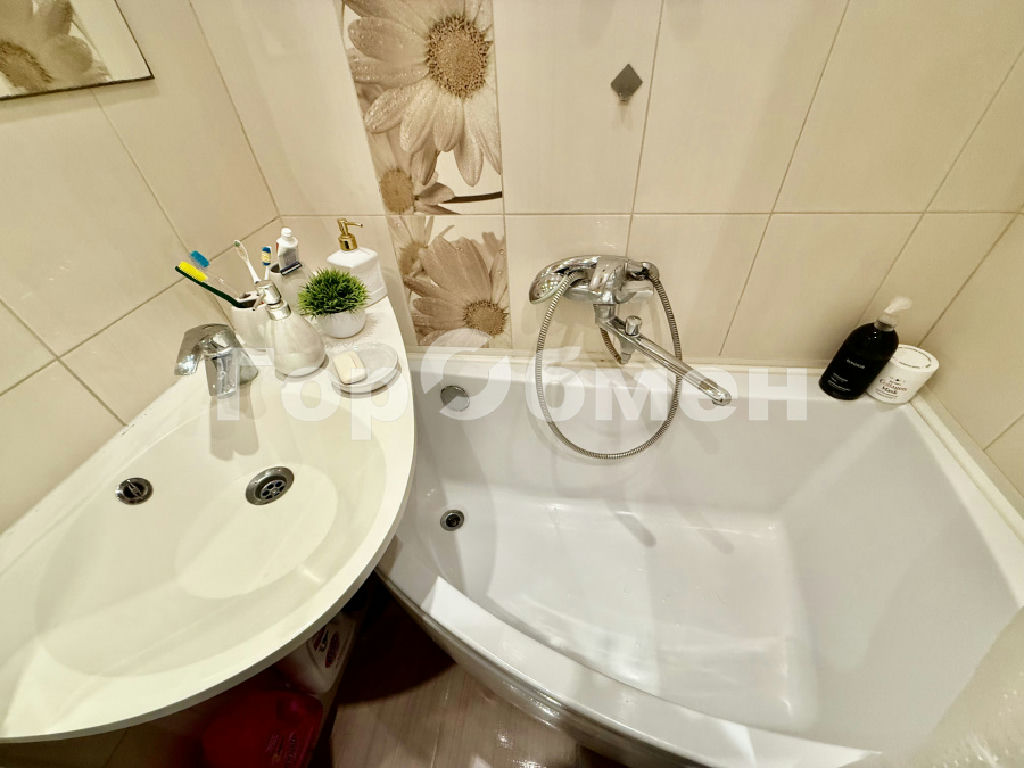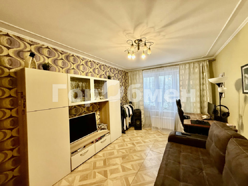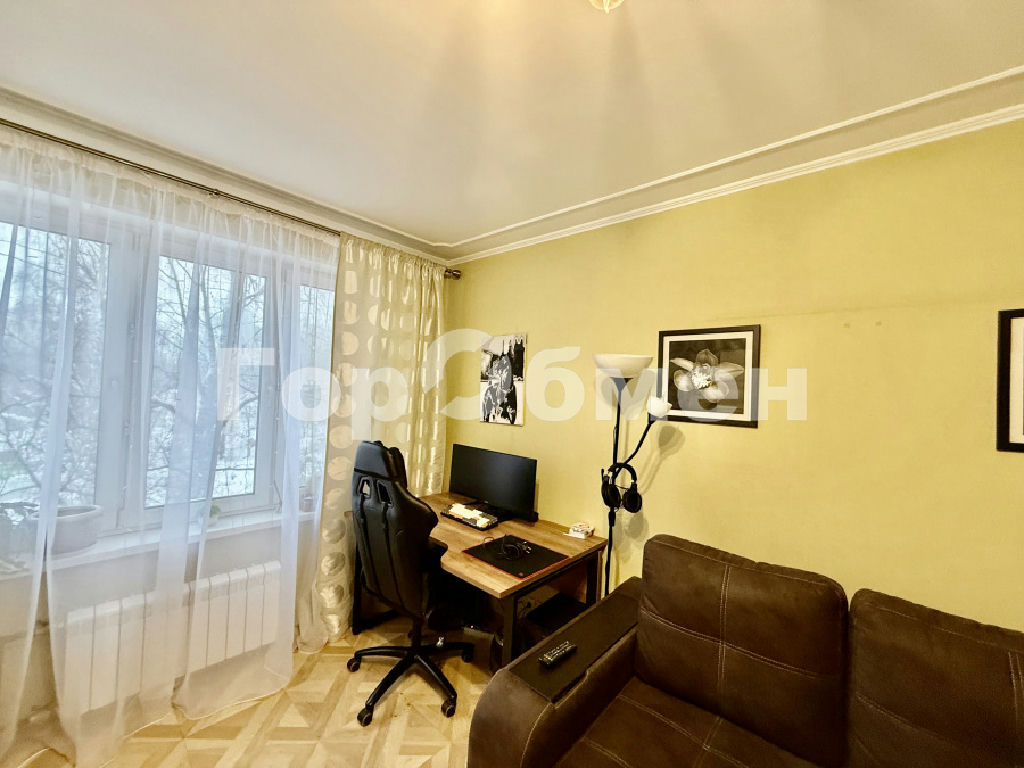 Площадь квартиры - 58,4 м2. Распашонка: три изолированных комнаты 12,6 м2, 11,6 м2, 18 м2. Из окна красивый вид, очень зелено, тихо и спокойно. Есть застекленная лоджия.