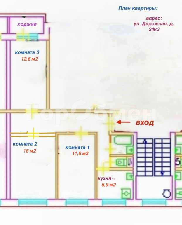 Комнаты: 18 12.6 11.6 м2