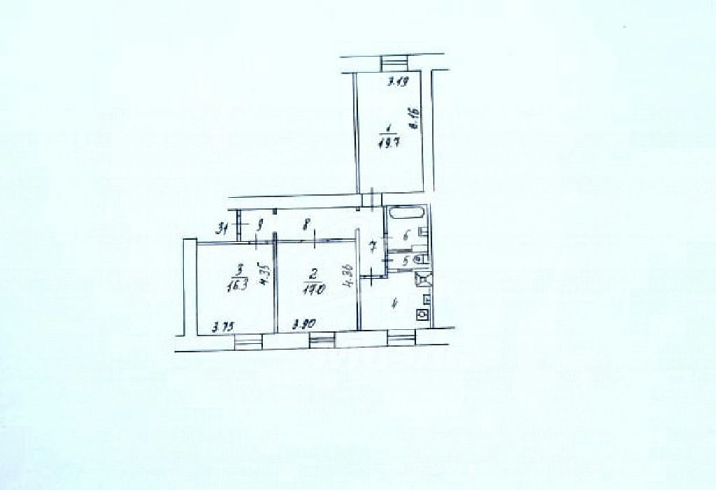 Комнаты: 19.7 17 16.3 м2