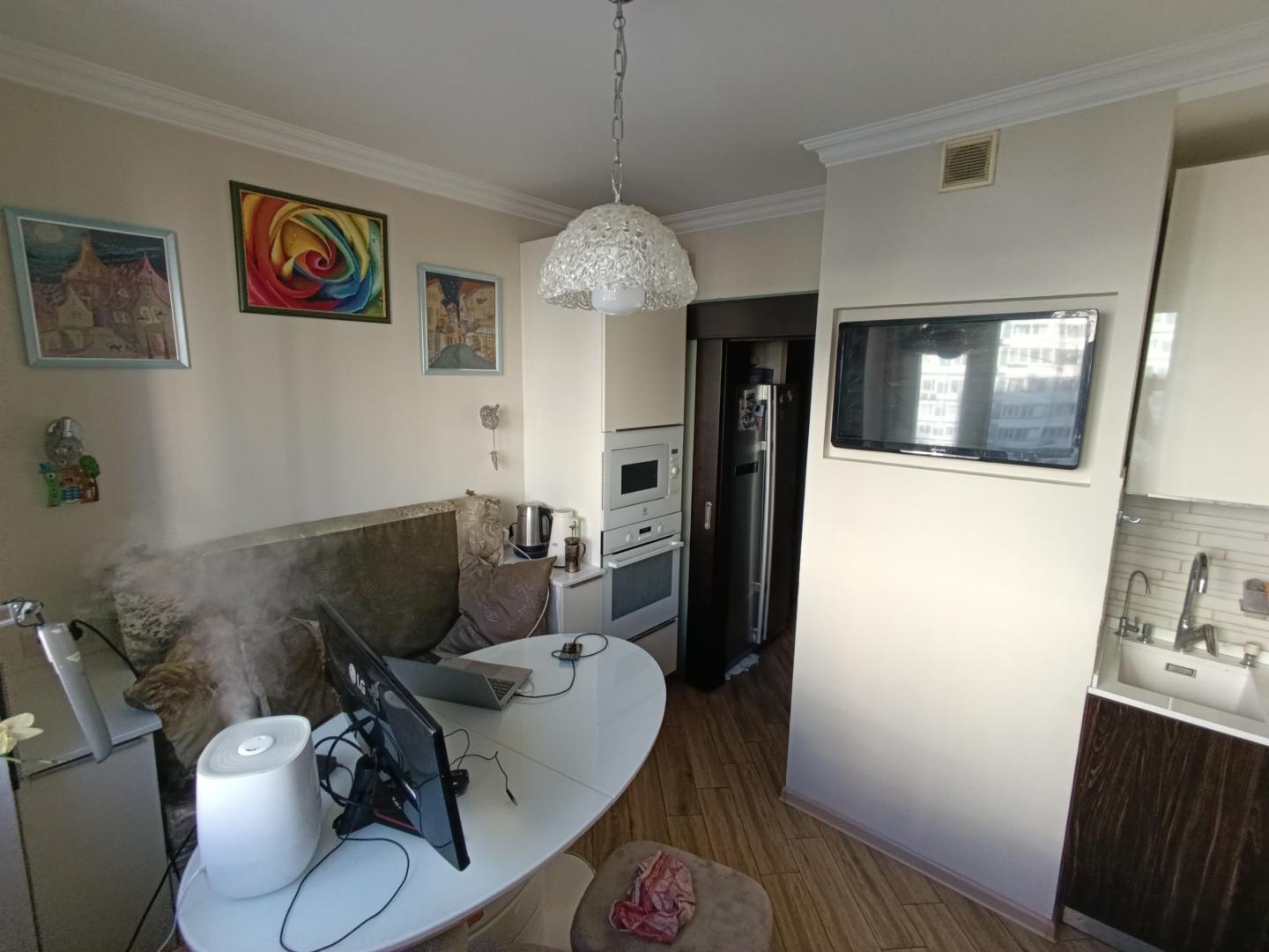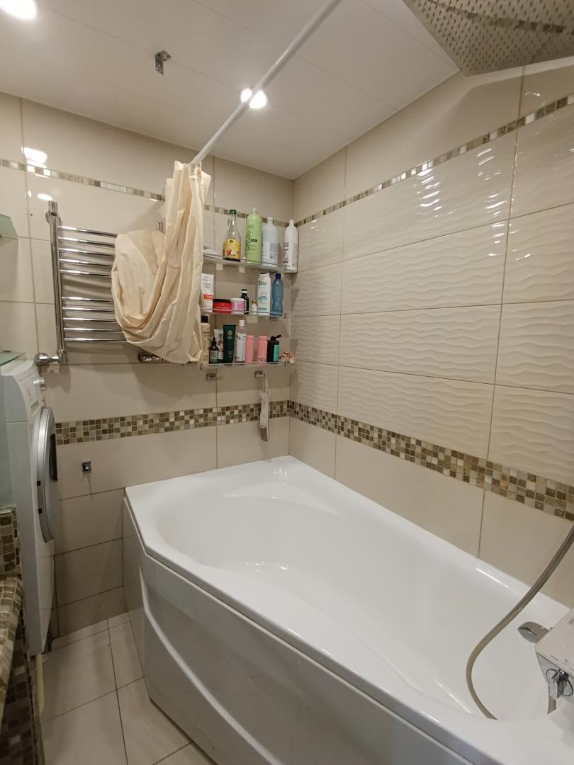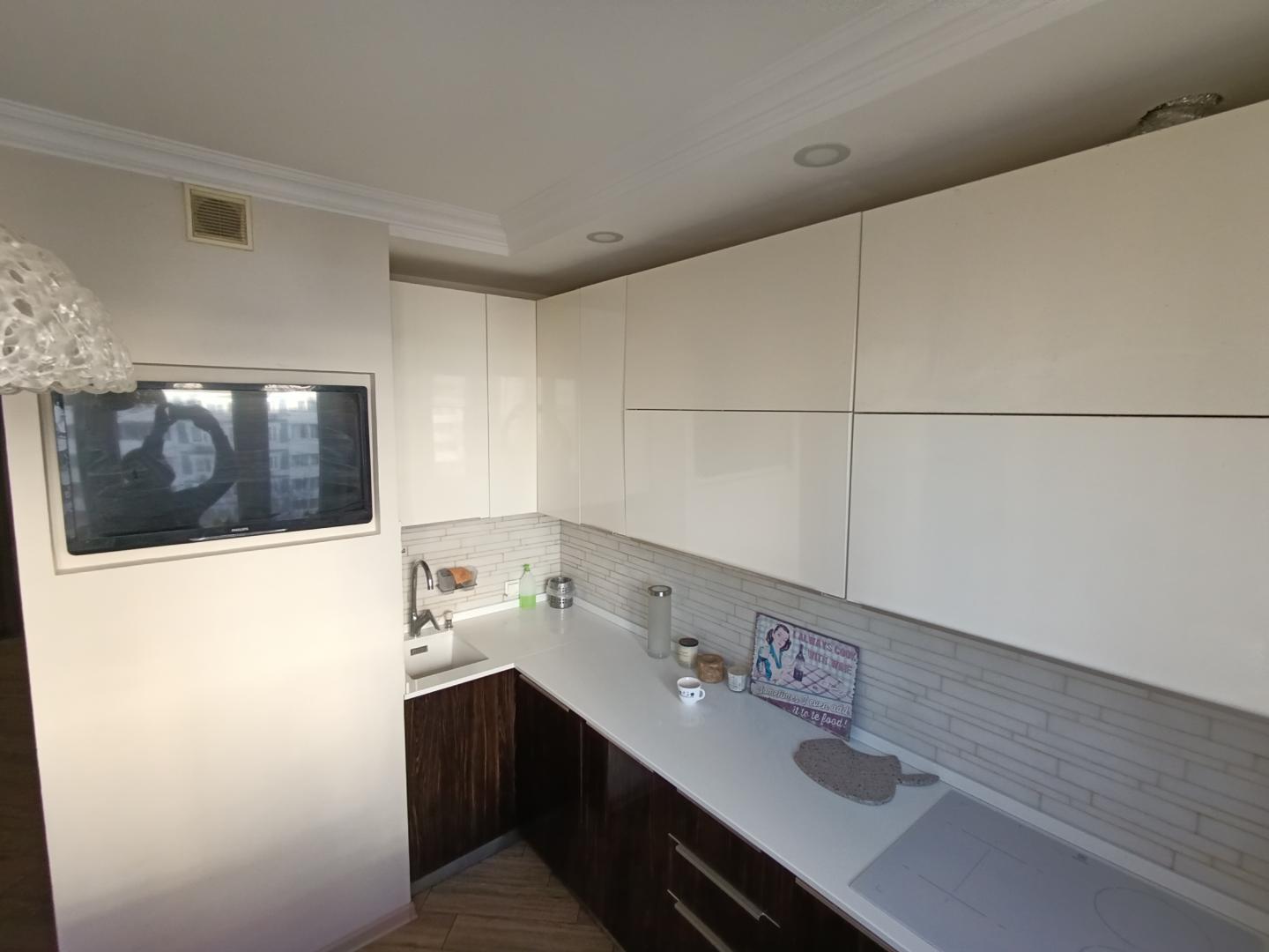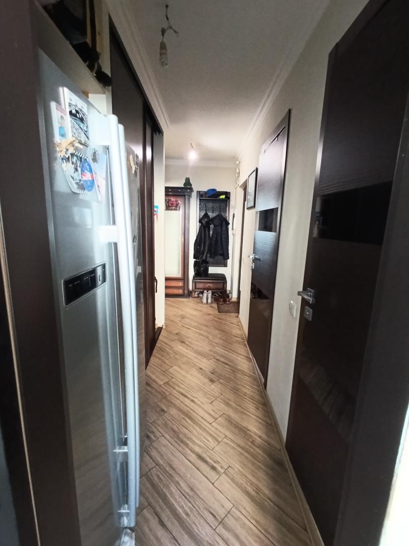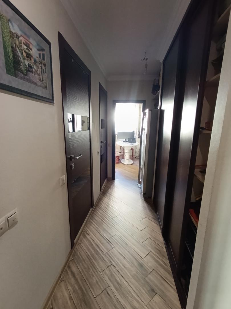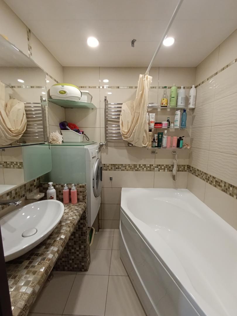 Из мебели в квартире остаются: качественный кухонный гарнитур с каменной столешницей и бытовой техникой, встроенный шкаф в коридоре.