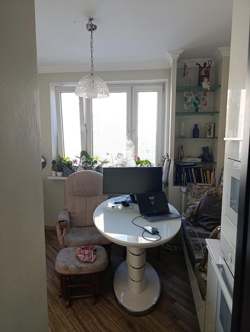 Пол в ванной и на балконе - с подогревом. В ванной и на кухне установлены датчики протечки воды с автоматическим отключением. В коридоре – вместительный встроенный шкаф, балкон остеклён и утеплён. В гостиной и большой спальне установлены кондиционеры. Во всех жилых комнатах стоят системы дополнительной приточной вентиляции с очисткой и подогревом (зимой) воздуха.