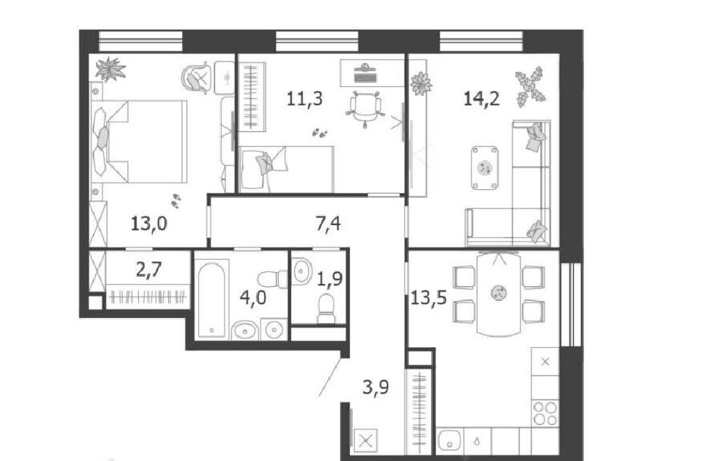 Кухня: 13,5 м2
