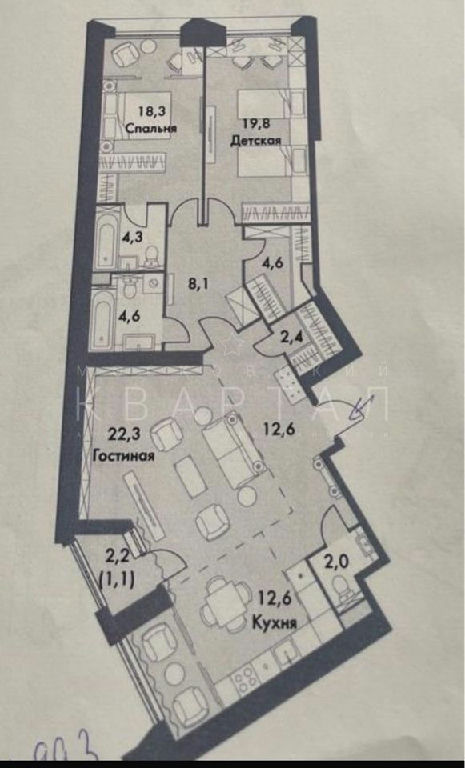 - кухня-гостиная 40 кв. ( с возможностью разделения при желании) с гостевым санузлом, гардеробной и лоджией