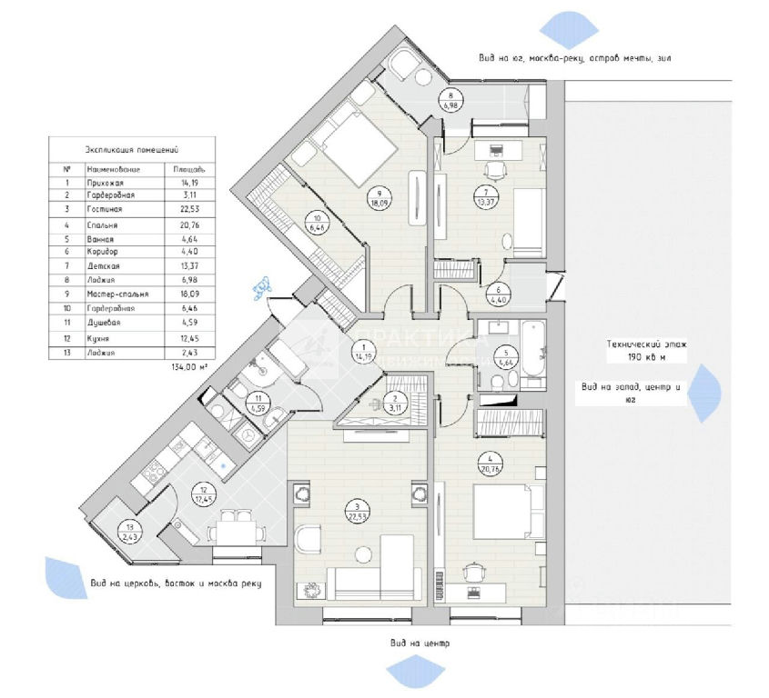 Общая: 134 м2